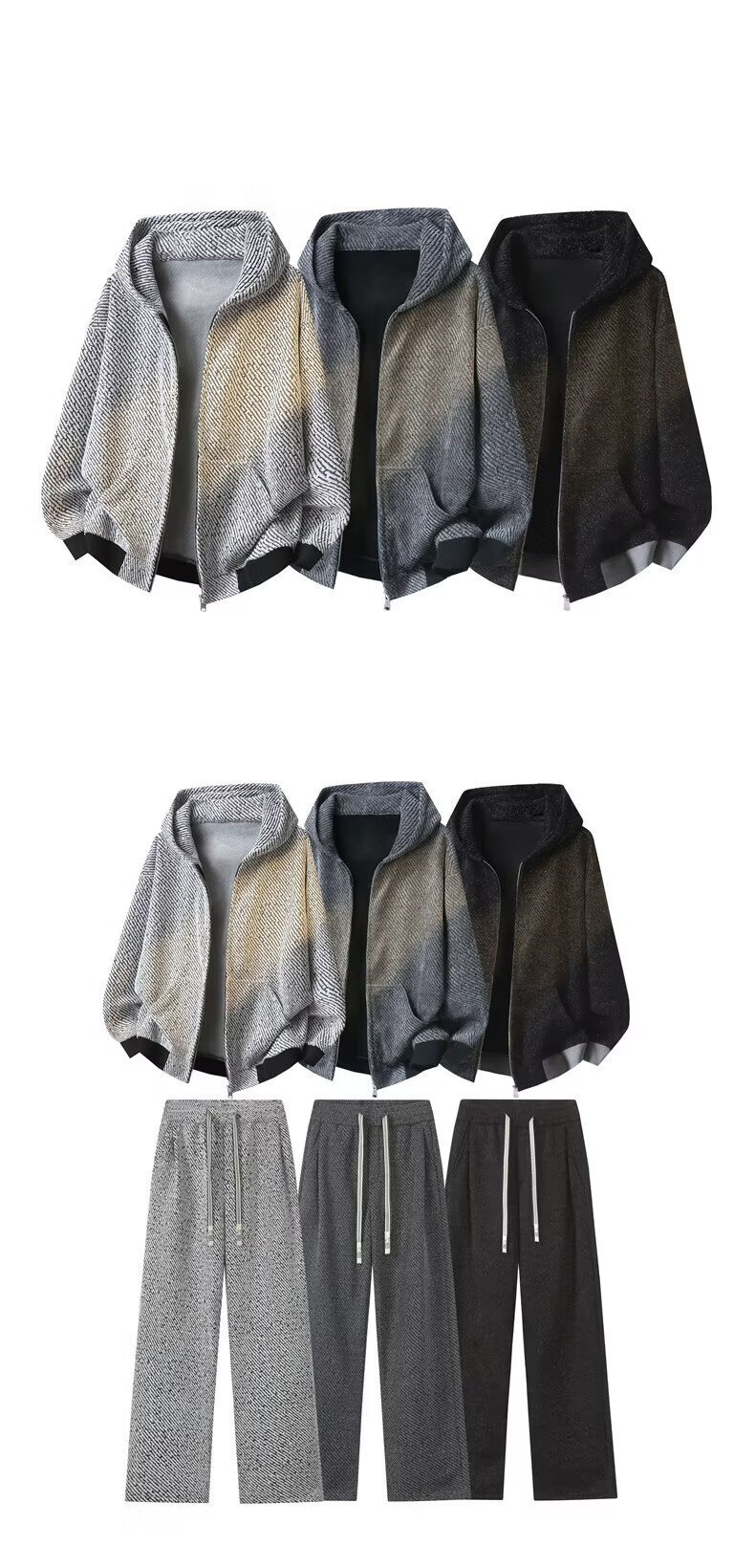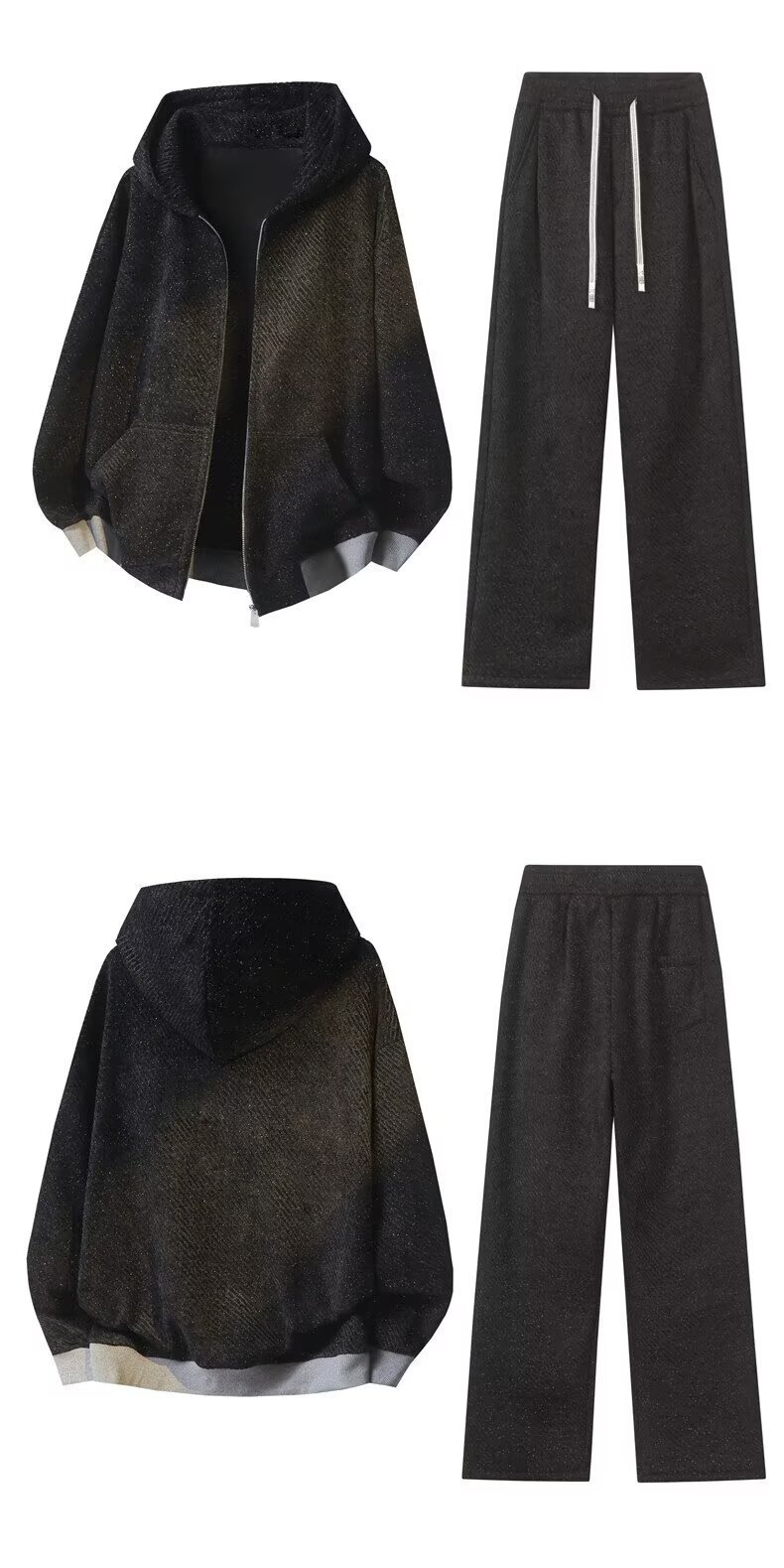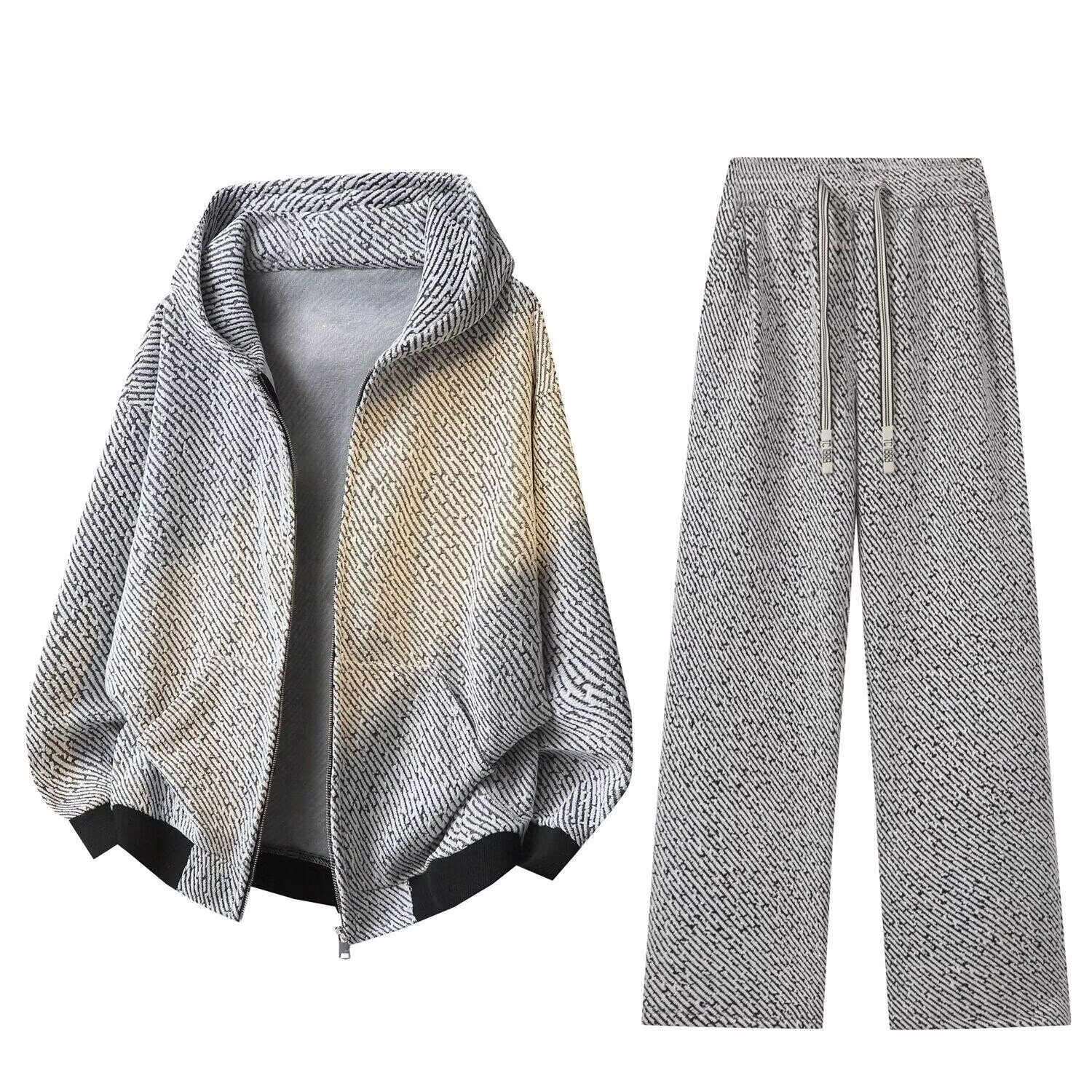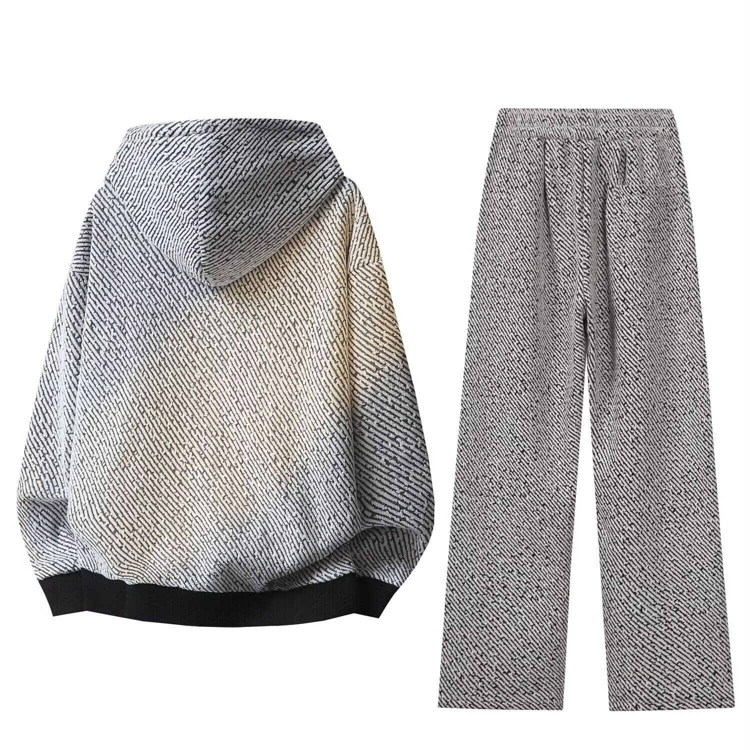 2025 새로운 후드 티셔츠와 스웨트 팬츠 투피스 세트 남성 트렌디 루즈 심플 솔리드 컬러 캐주얼 스포츠 슈트스토어 가기