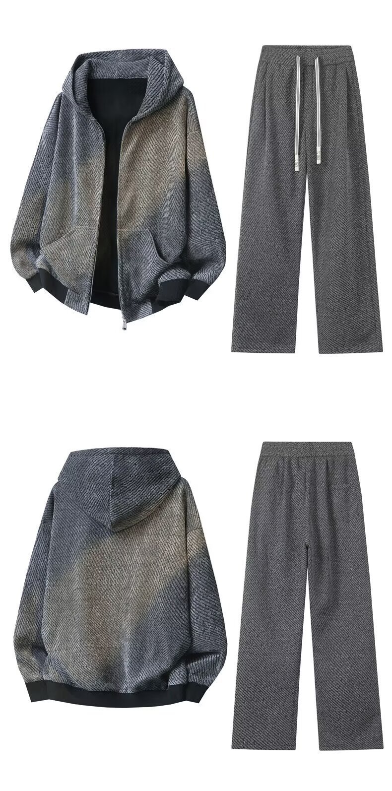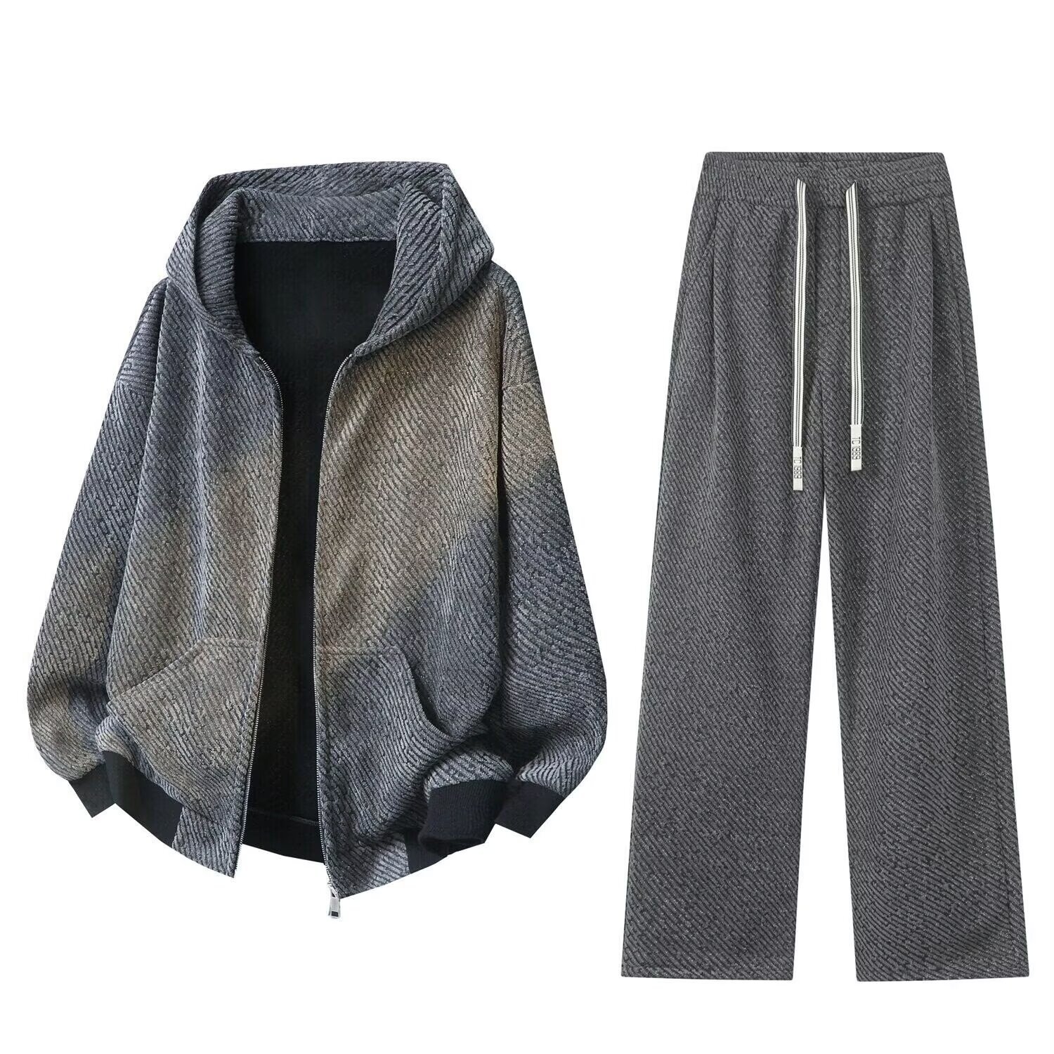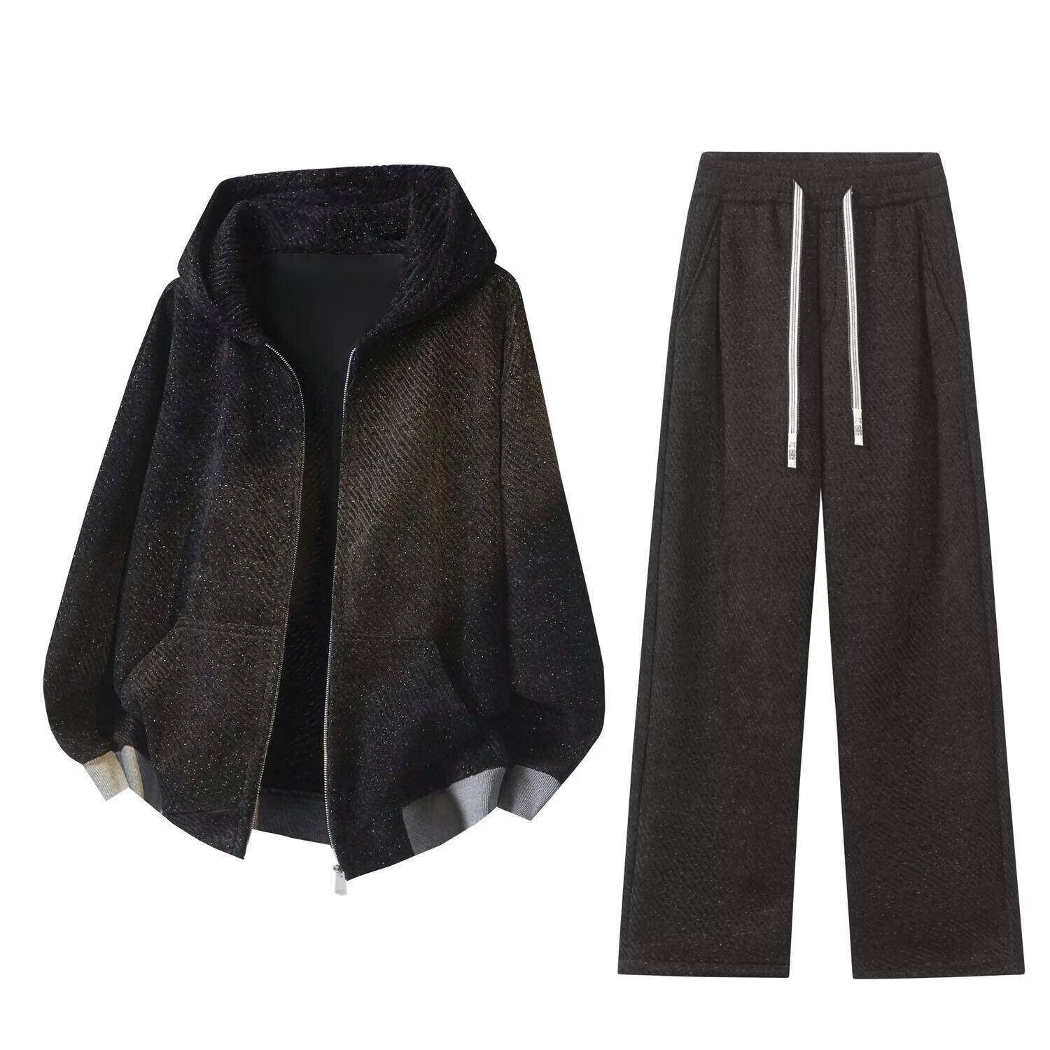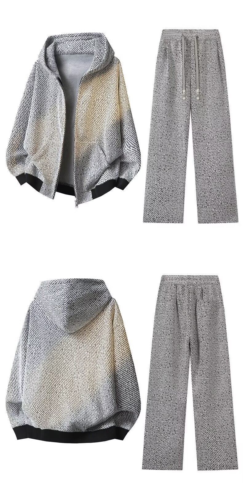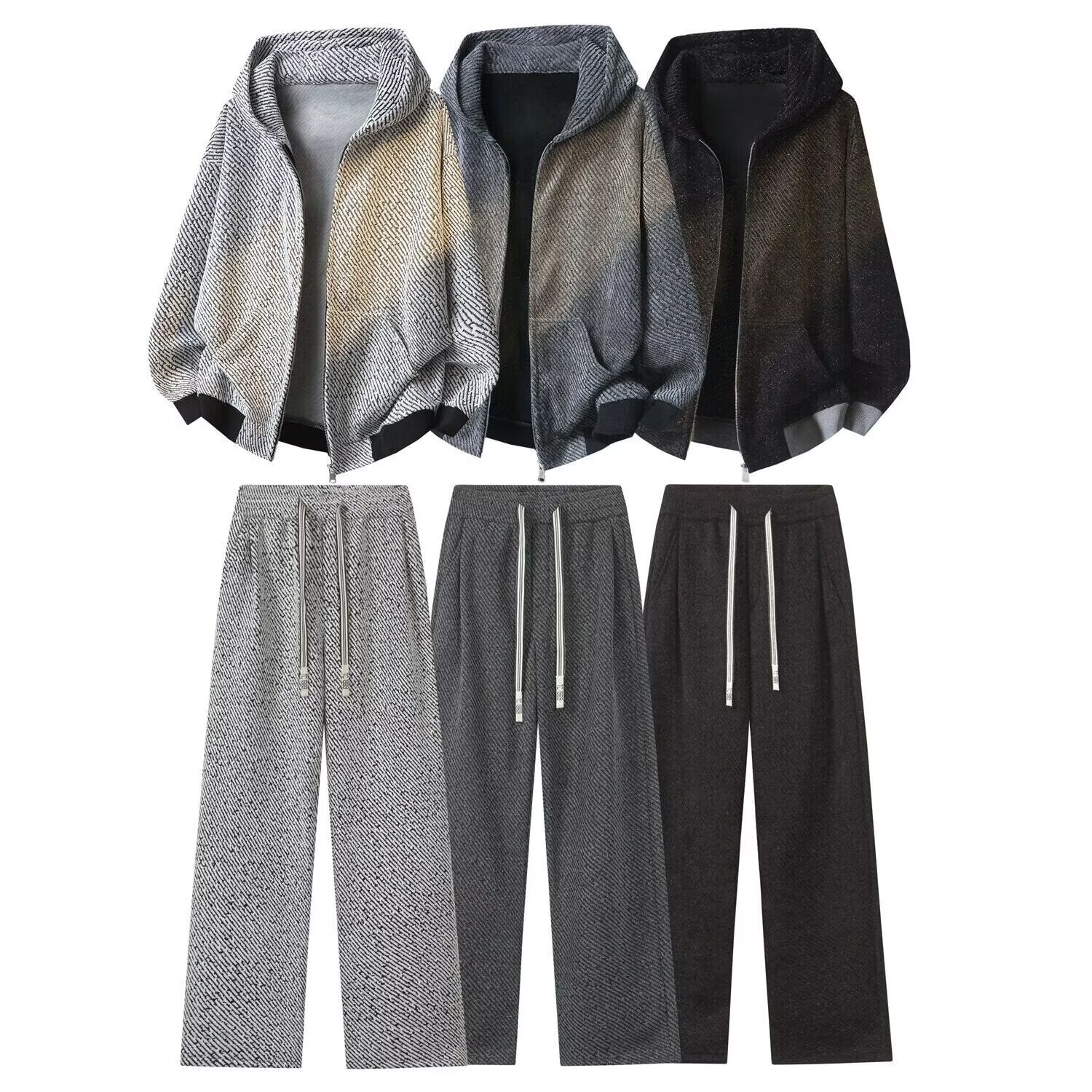 2025 새로운 후드 티셔츠와 스웨트 팬츠 투피스 세트 남성 트렌디 루즈 심플 솔리드 컬러 캐주얼 스포츠 슈트스토어 가기
