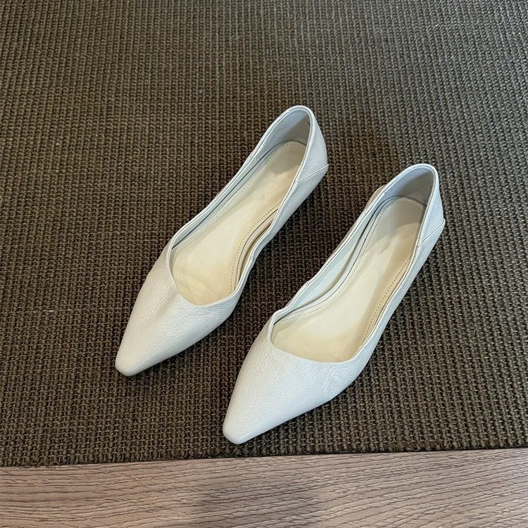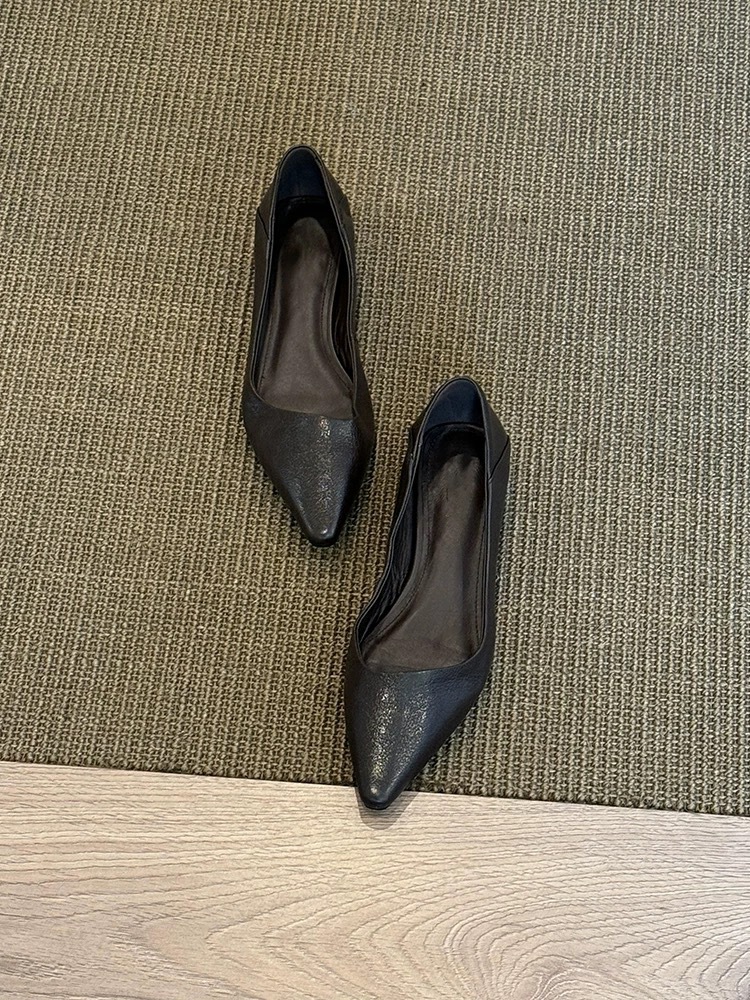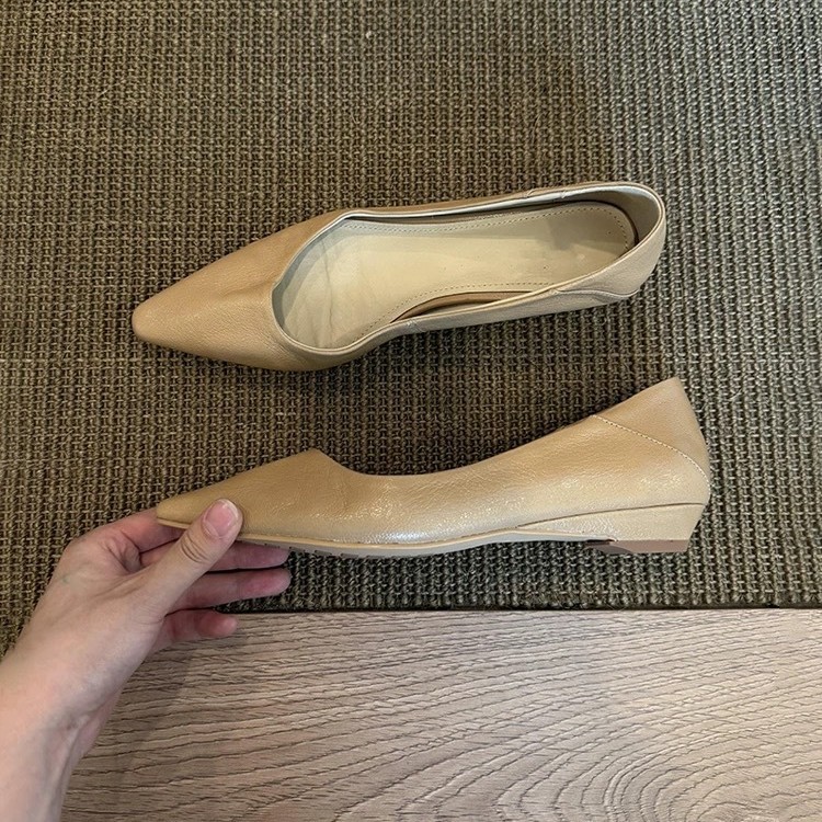 소가죽 버전 ~ 미니멀 스타일 작은 웨지힐 포인티드 토 여성용 심플 슈즈 2025 신작 봄, 가을 통근 플랫 여성화스토어 가기