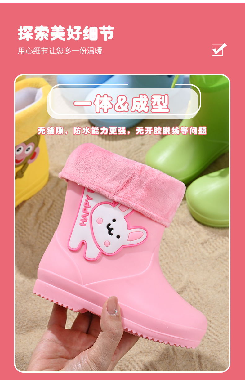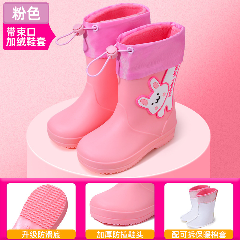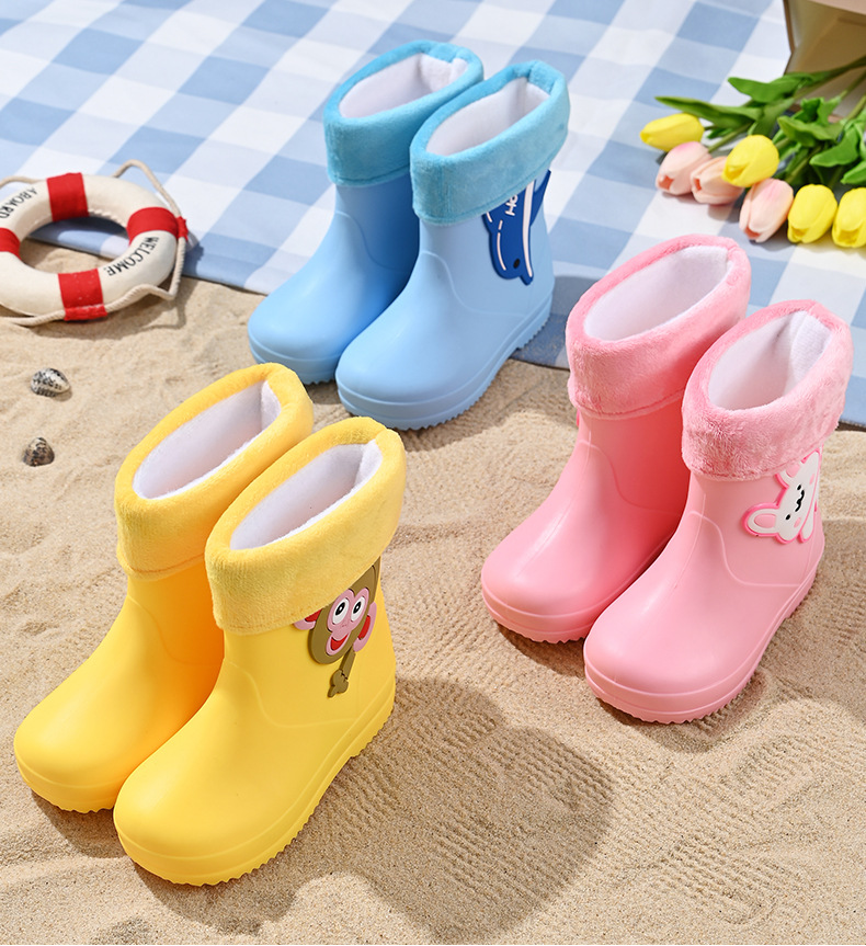 어린이 장화 미끄럼 방지 소녀 유치원 장화 아기 장화 소년 벨벳 두꺼운 따뜻한 라이너 워터 슈즈