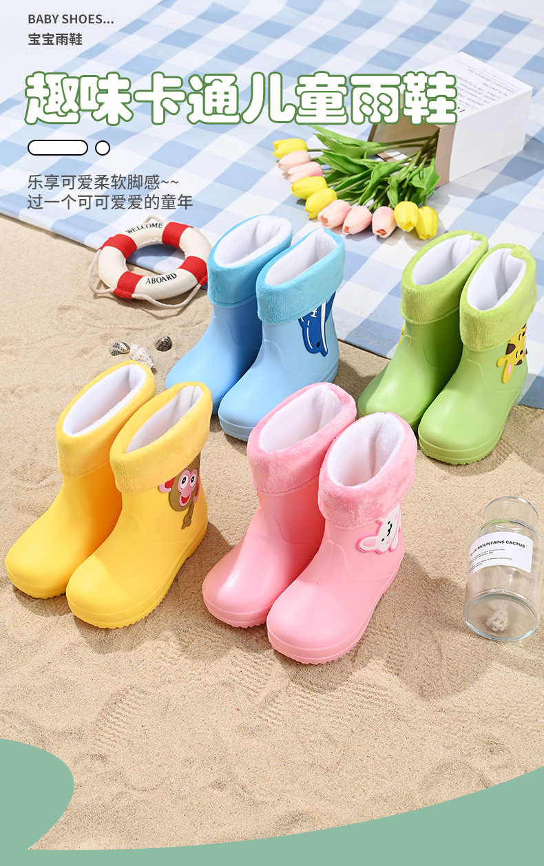 어린이 장화 미끄럼 방지 소녀 유치원 장화 아기 장화 소년 벨벳 두꺼운 따뜻한 라이너 워터 슈즈스토어 가기