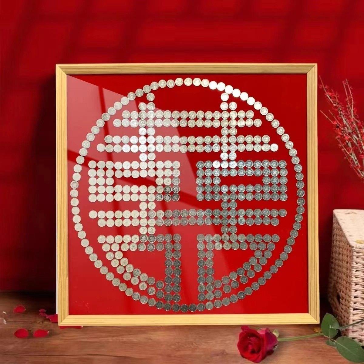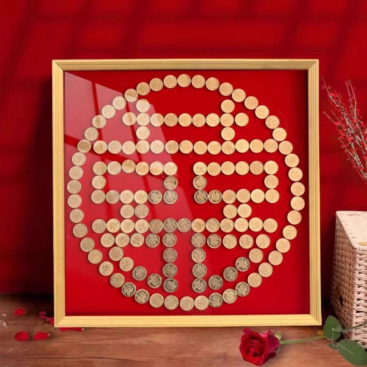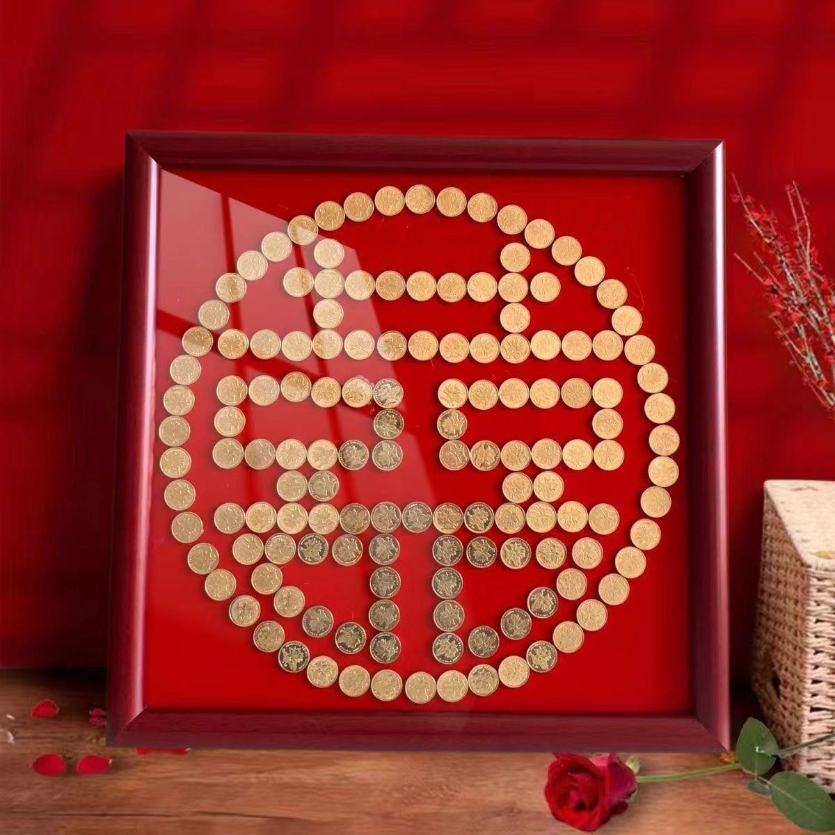 결혼식 동전 사진 프레임 5센트 동전 DIY 수제 자체 접착 템플릿 오각형 액자 DIY스토어 가기
