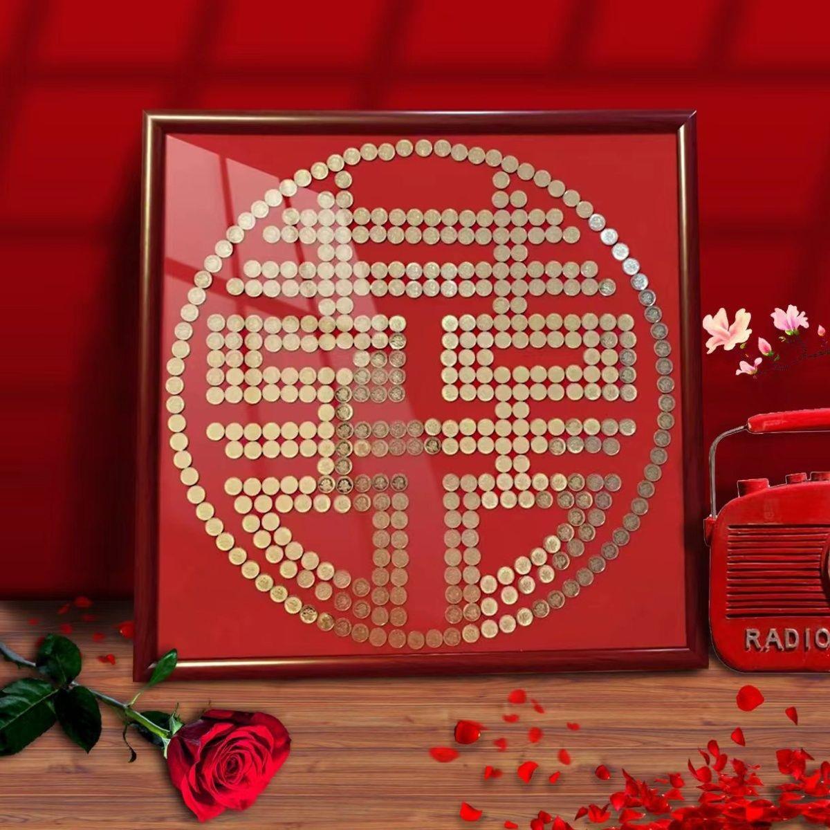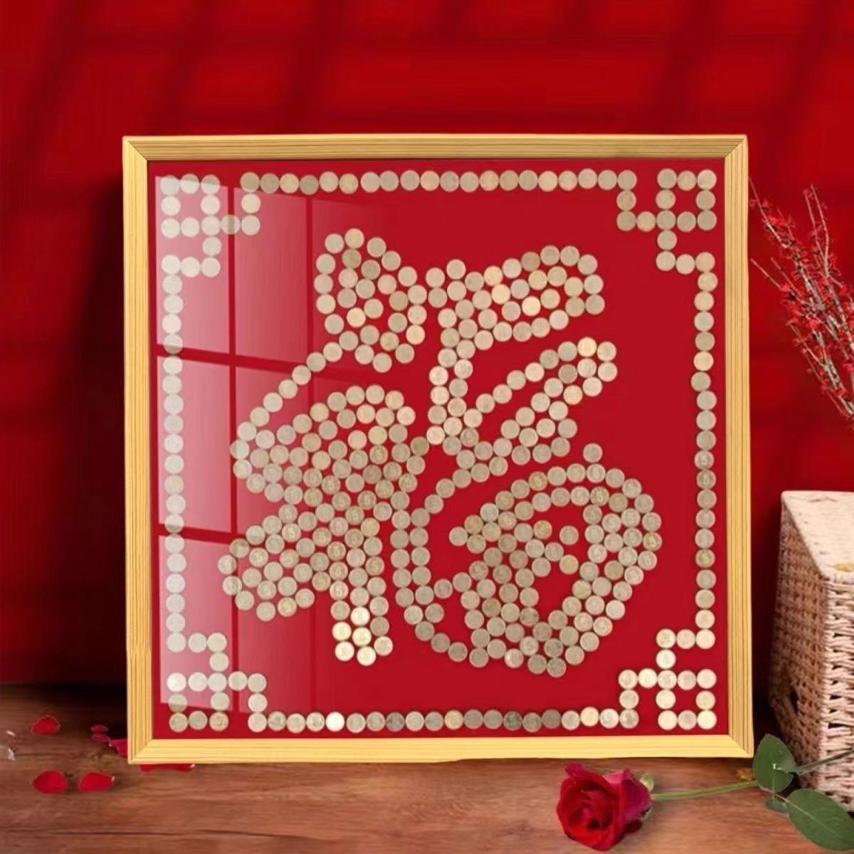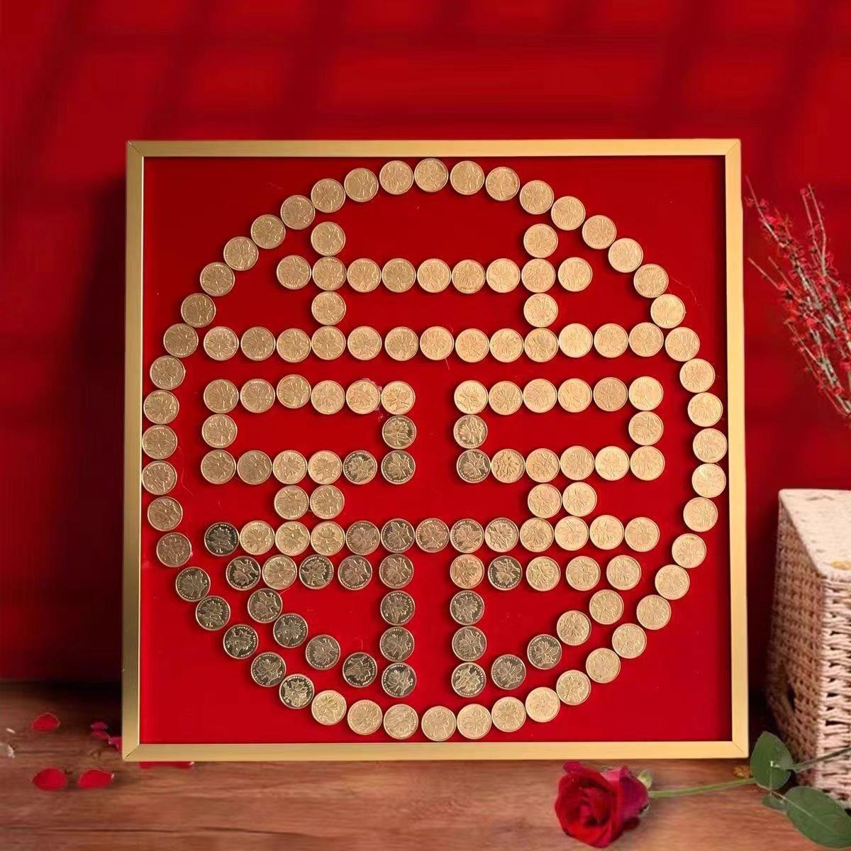 결혼식 동전 사진 프레임 5센트 동전 DIY 수제 자체 접착 템플릿 오각형 액자 DIY스토어 가기