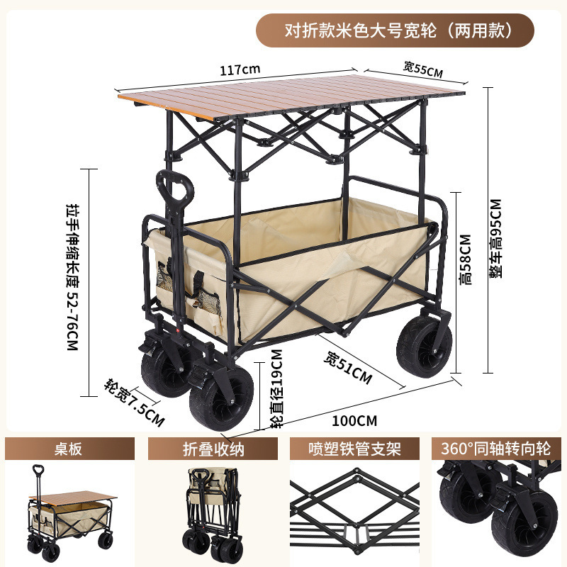 • 캠프카 + 접이식 테이블 - 브레이크가 장착된 대형 오프로드 휠(베이지색) ✦ ✦