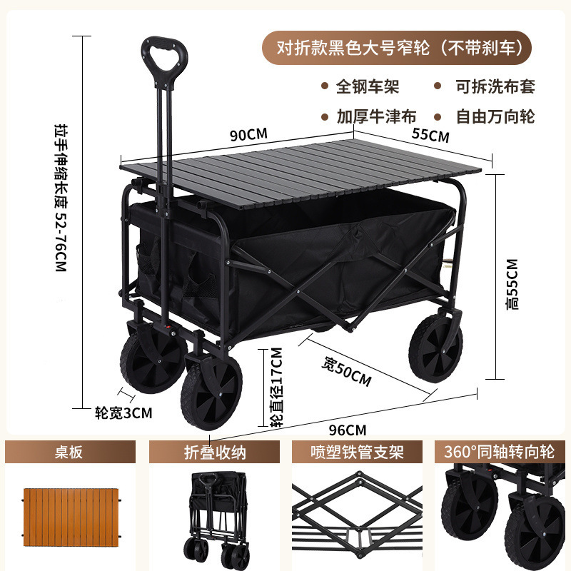 • 캠프카 + 접이식 테이블 - 브레이크가 장착된 대형 오프로드 휠(블랙) ✦ ✦