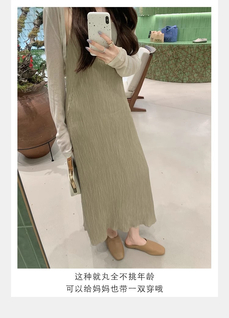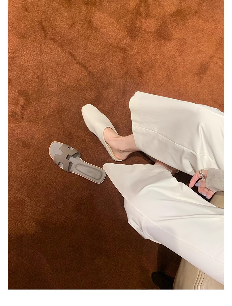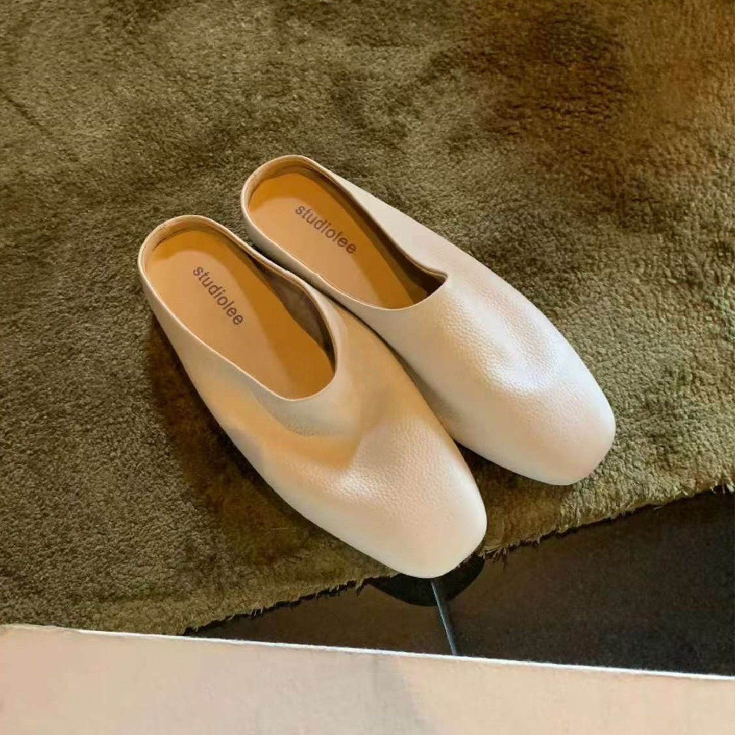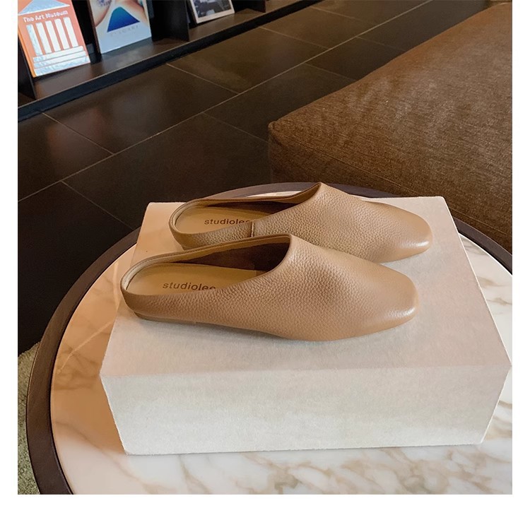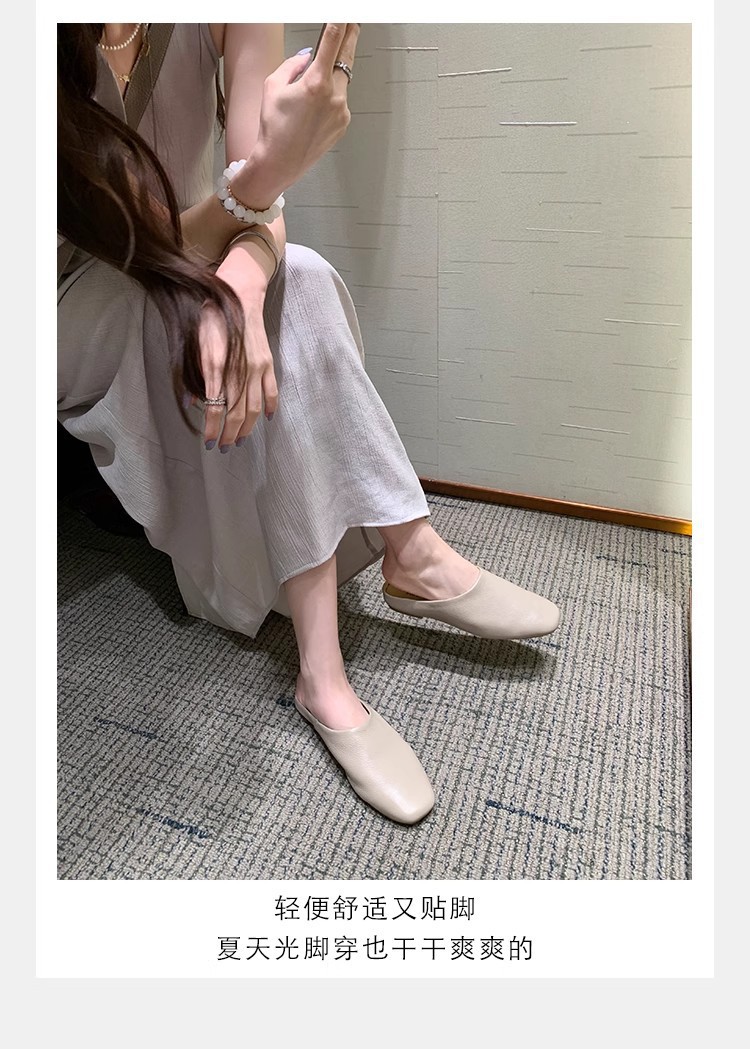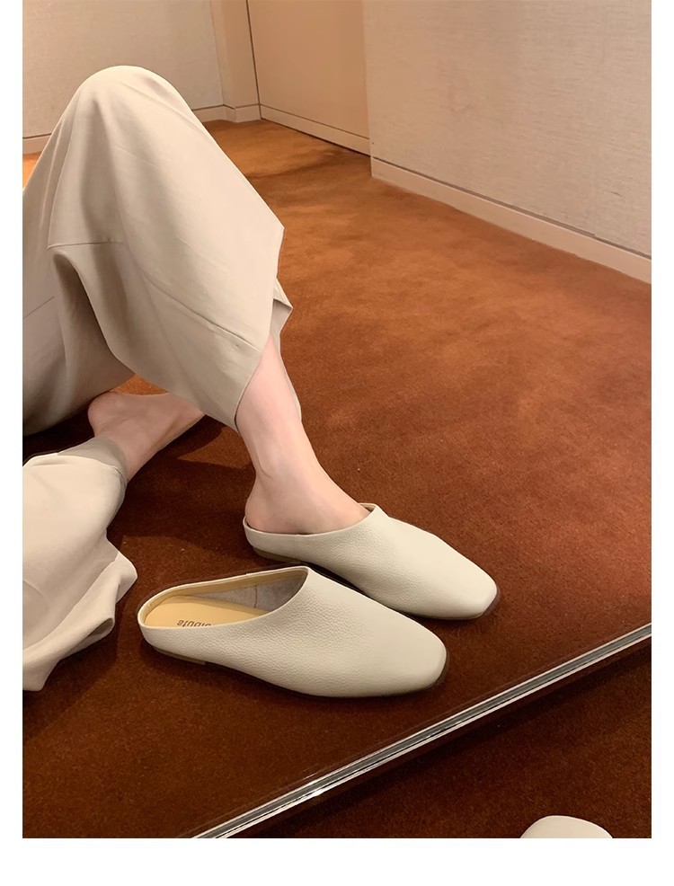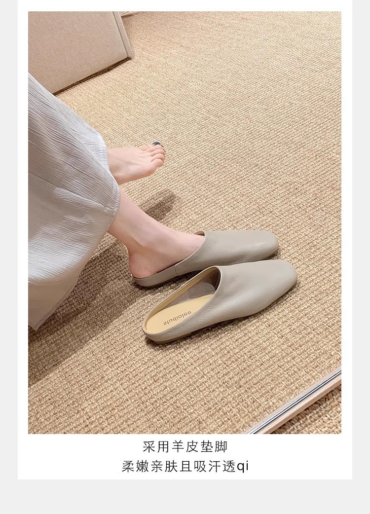 양가죽 포도 엄마와 똑같은 스타일, 여름 아우터로 착용하기 좋은 부드럽고 착용하기 쉬운 여성용 토캡 슬리퍼, 슬립온 뮬러 하프 슬리퍼스토어 가기