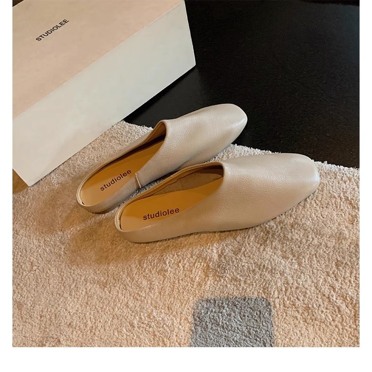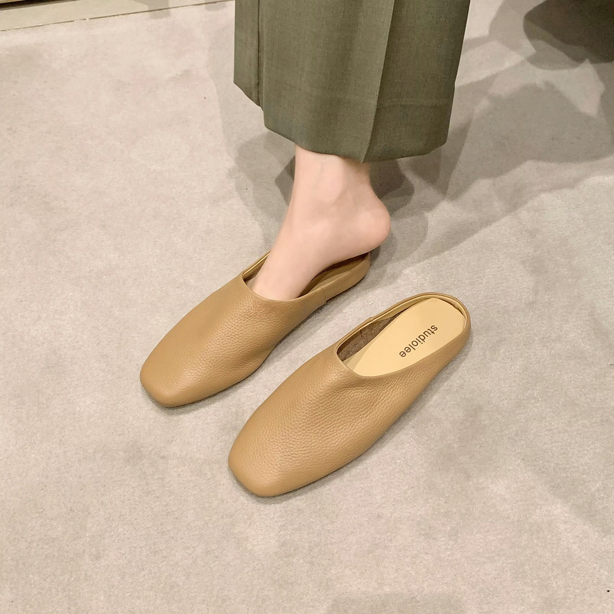 양가죽 포도 엄마와 똑같은 스타일, 여름 아우터로 착용하기 좋은 부드럽고 착용하기 쉬운 여성용 토캡 슬리퍼, 슬립온 뮬러 하프 슬리퍼