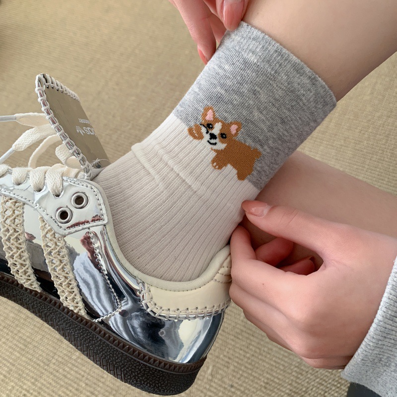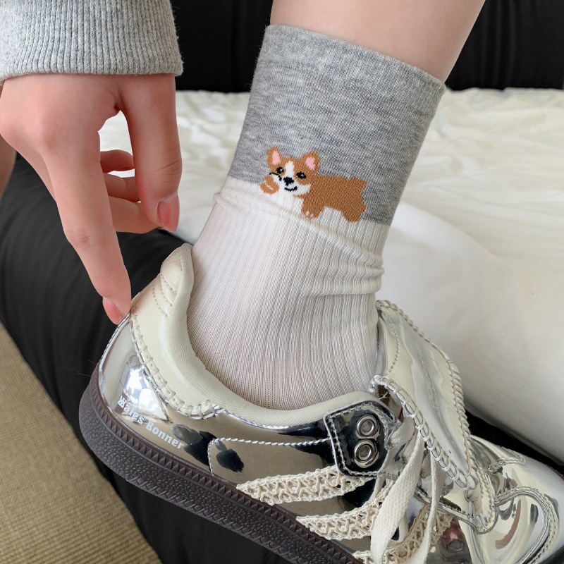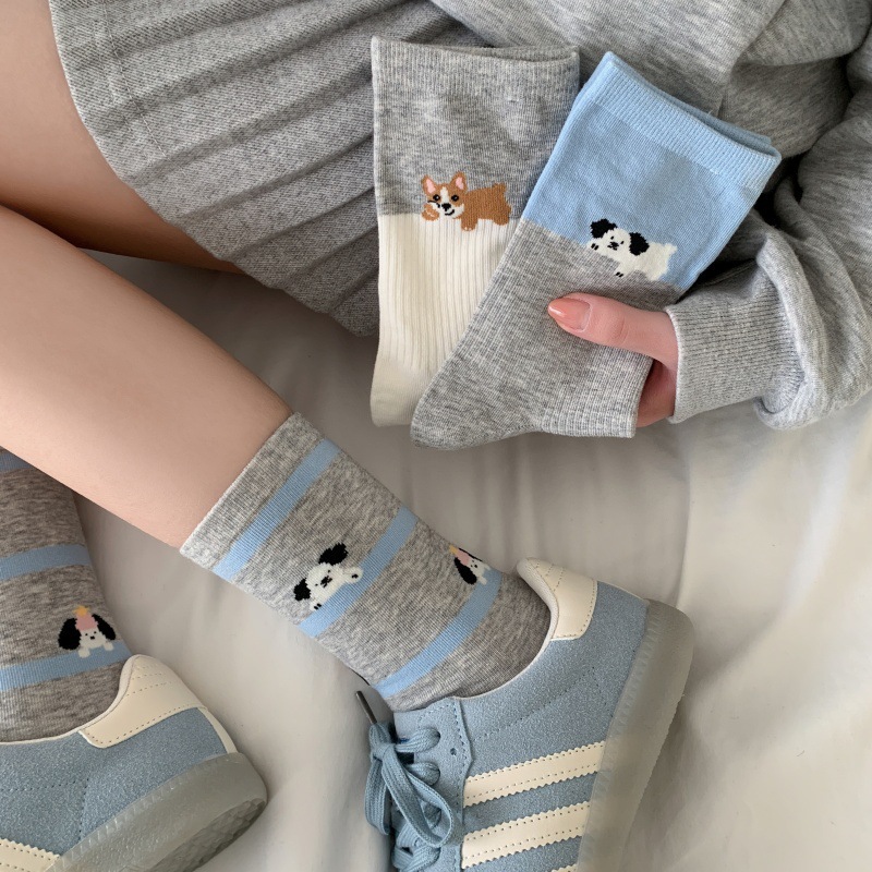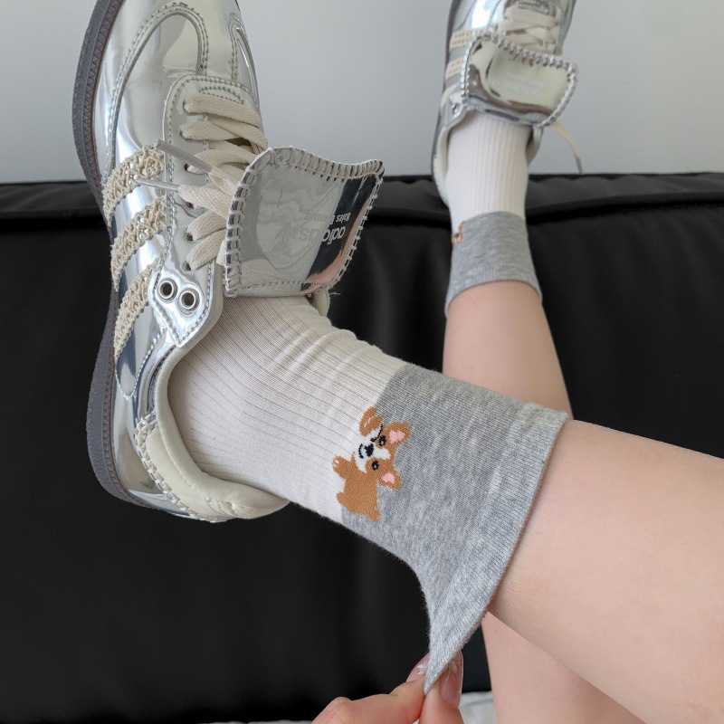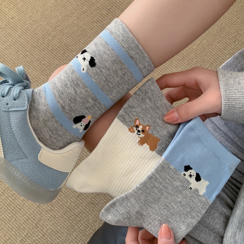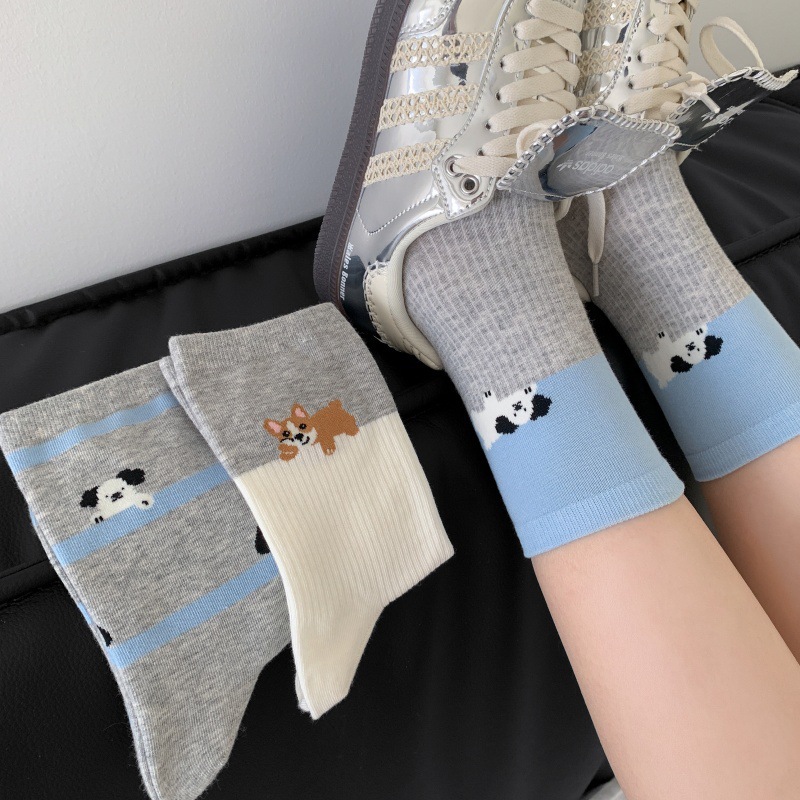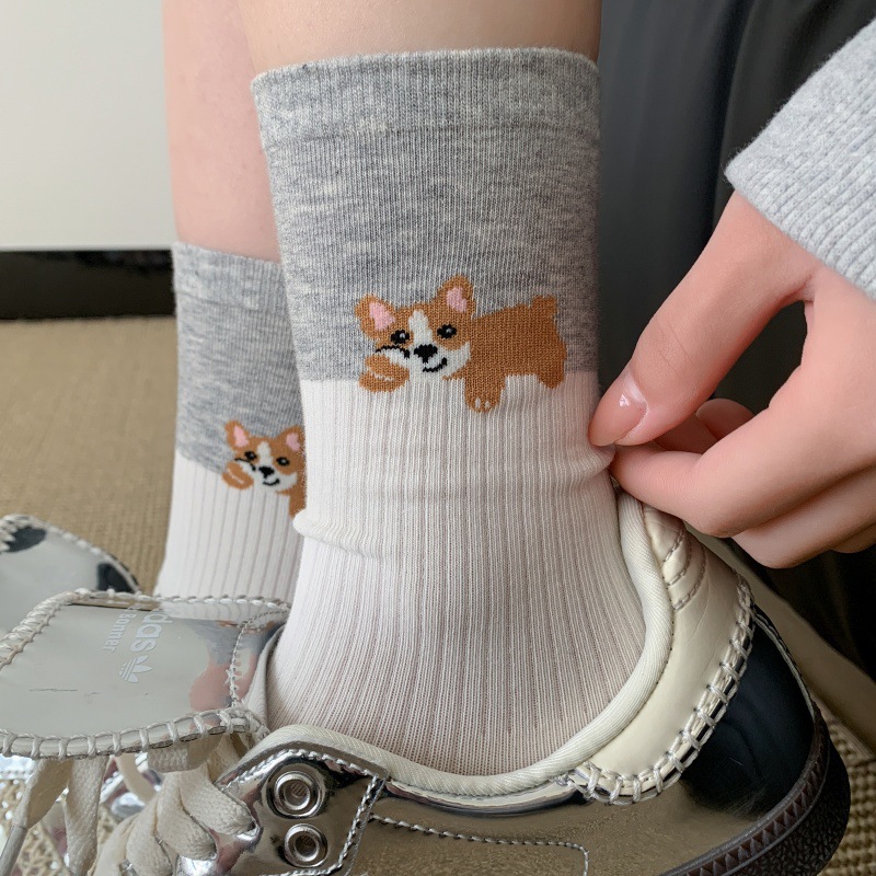 뼈없는 양말 한국 스타일 트렌디 컬러 매칭 봄 여름 만화 개 귀여운 소녀 종아리 양말 스포츠 및 레저 양말스토어 가기