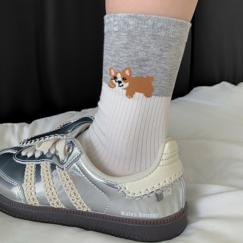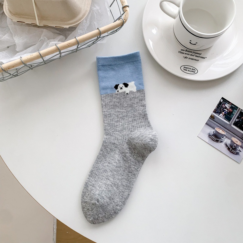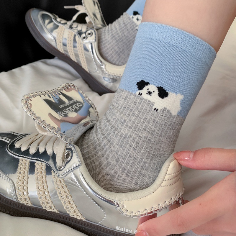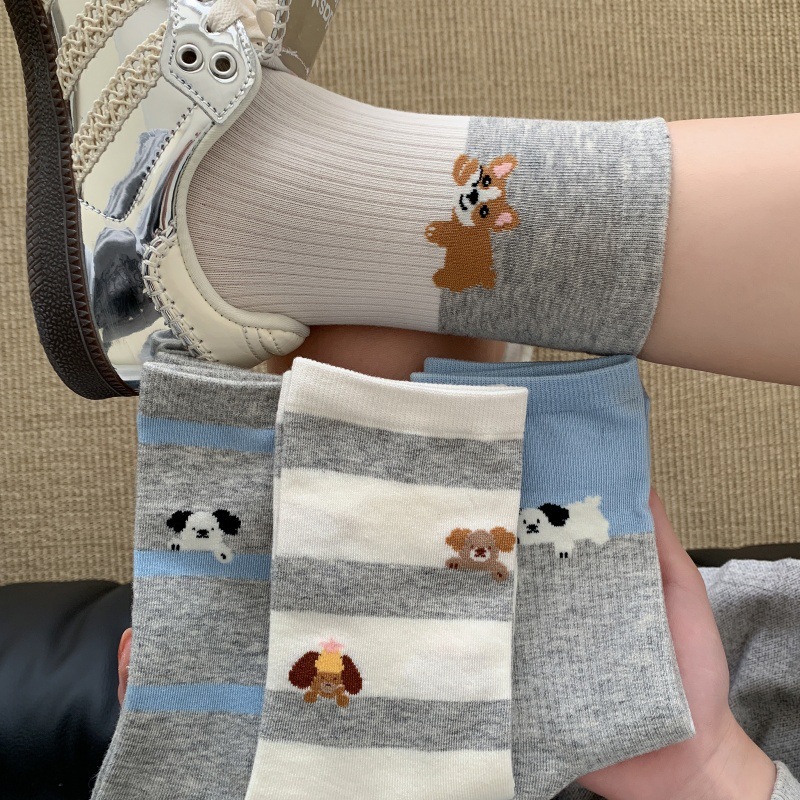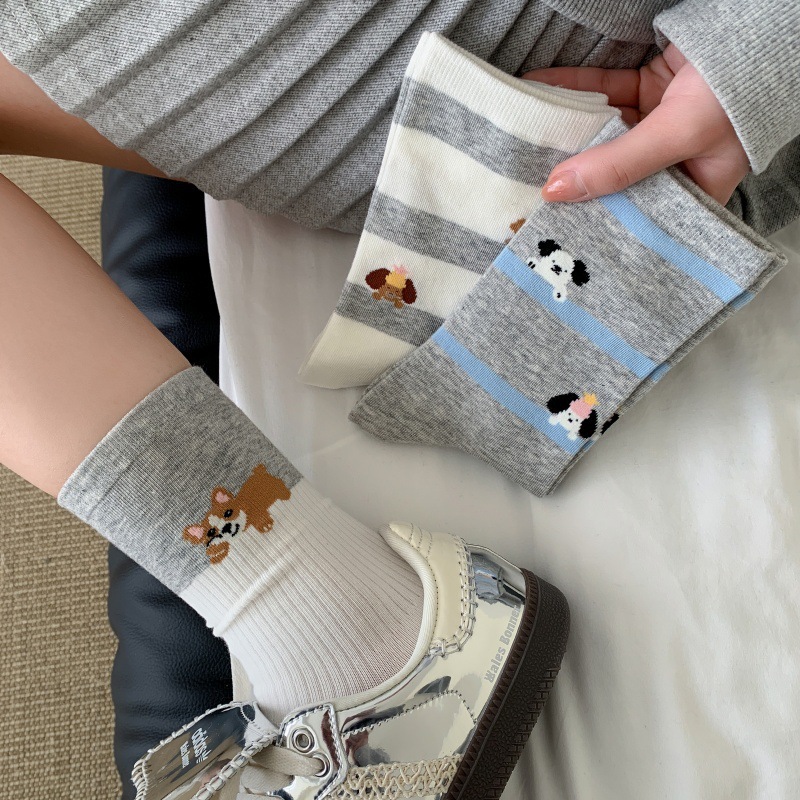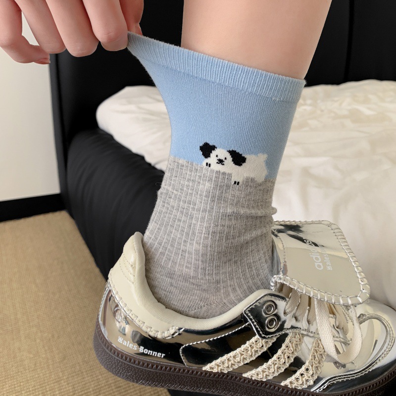 뼈없는 양말 한국 스타일 트렌디 컬러 매칭 봄 여름 만화 개 귀여운 소녀 종아리 양말 스포츠 및 레저 양말스토어 가기