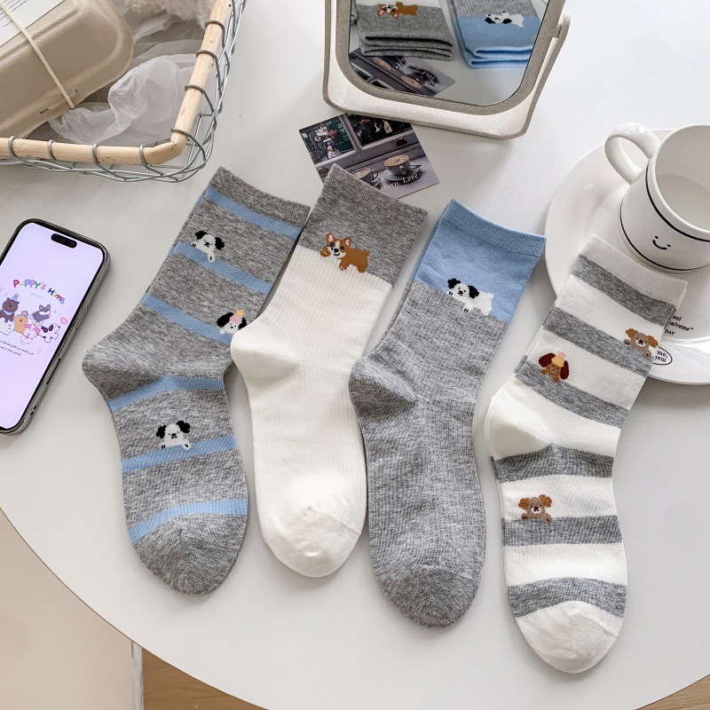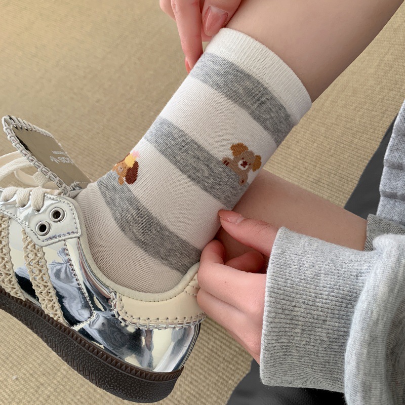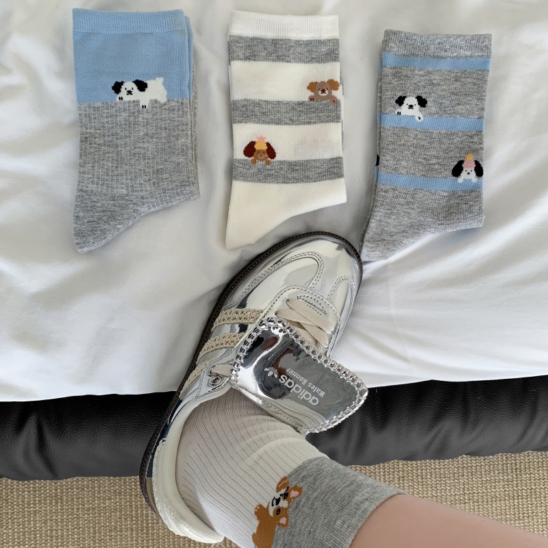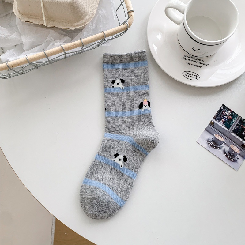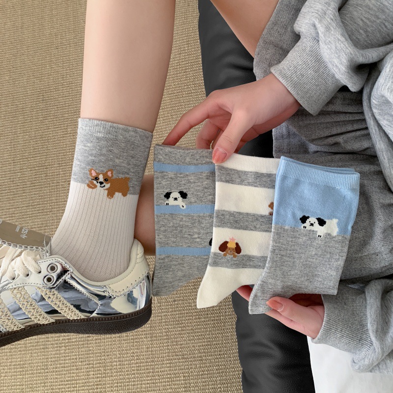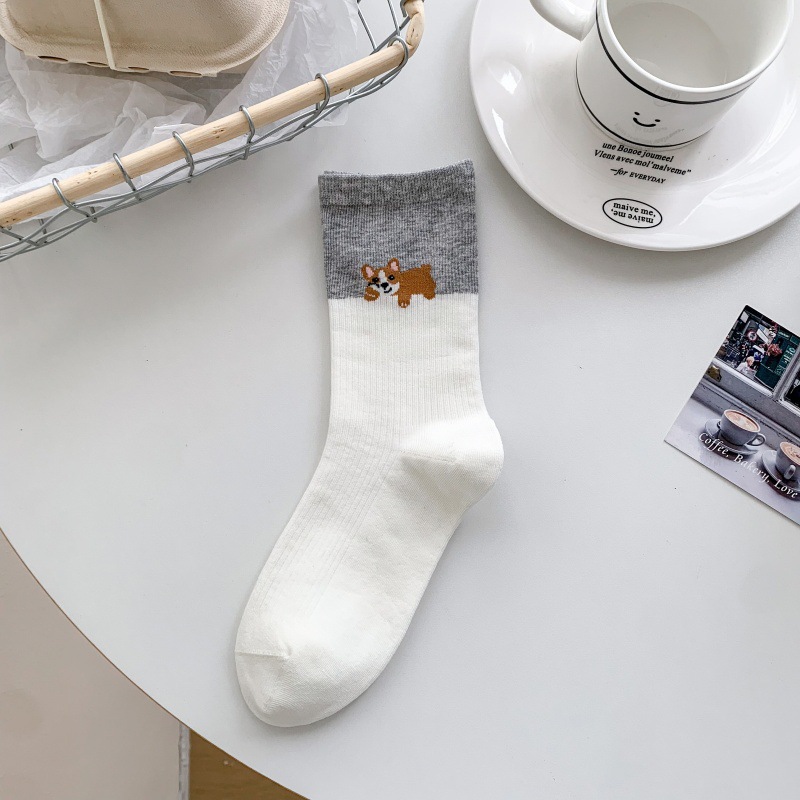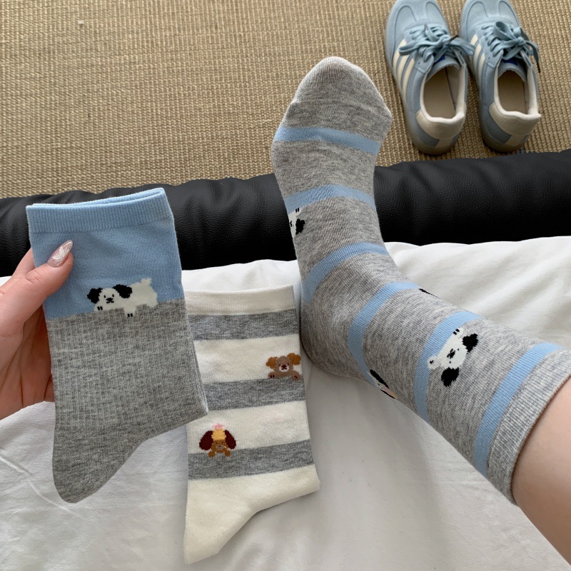 뼈없는 양말 한국 스타일 트렌디 컬러 매칭 봄 여름 만화 개 귀여운 소녀 종아리 양말 스포츠 및 레저 양말스토어 가기