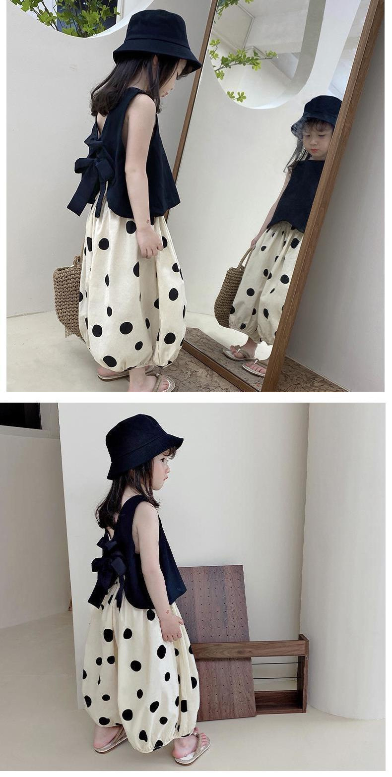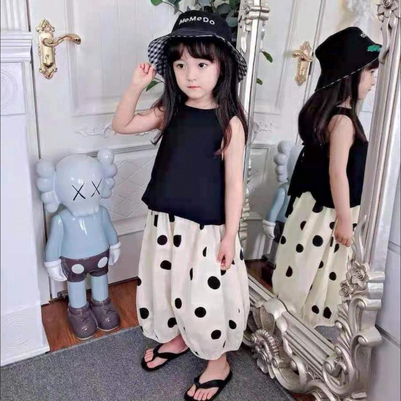 여아 정장 공주 아기 어린이 여름 투피스 조끼 반팔 캐주얼 블루머 얇은 와이드 팬츠 유행