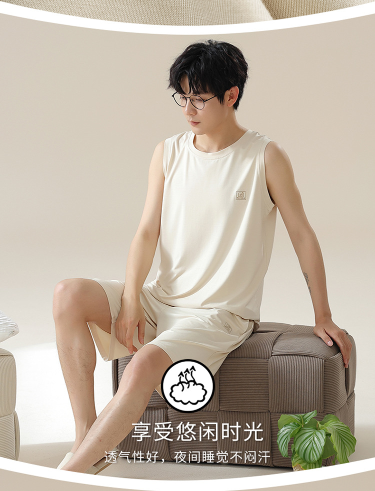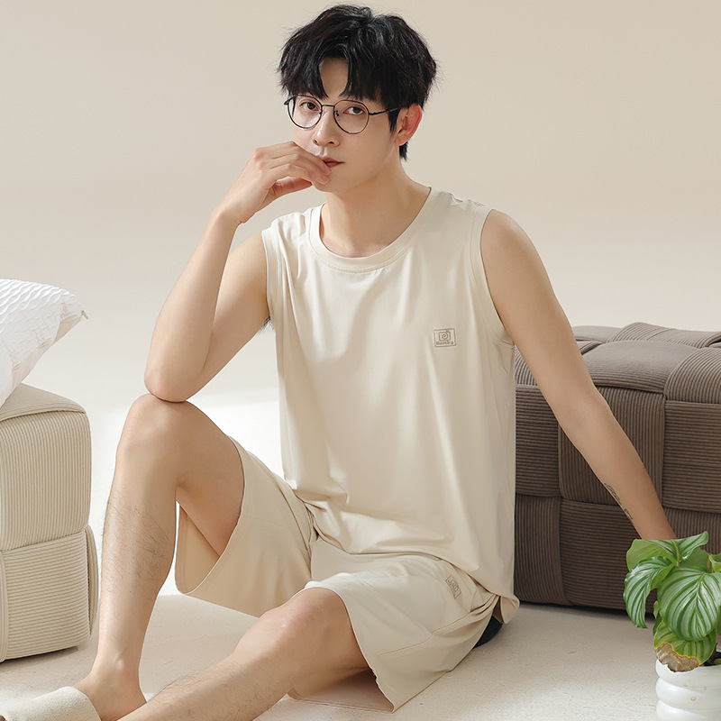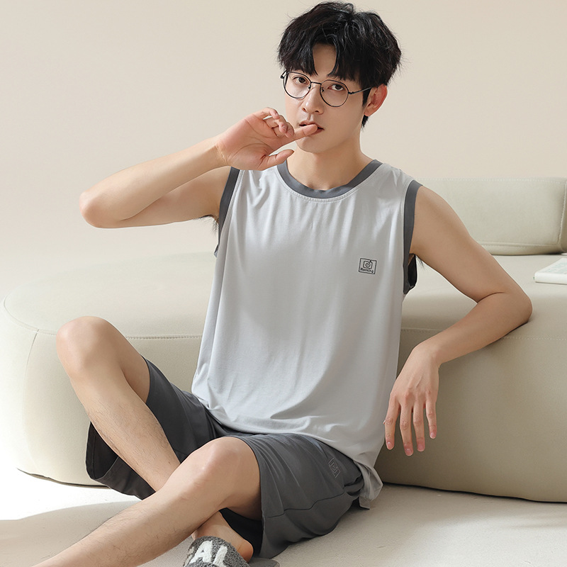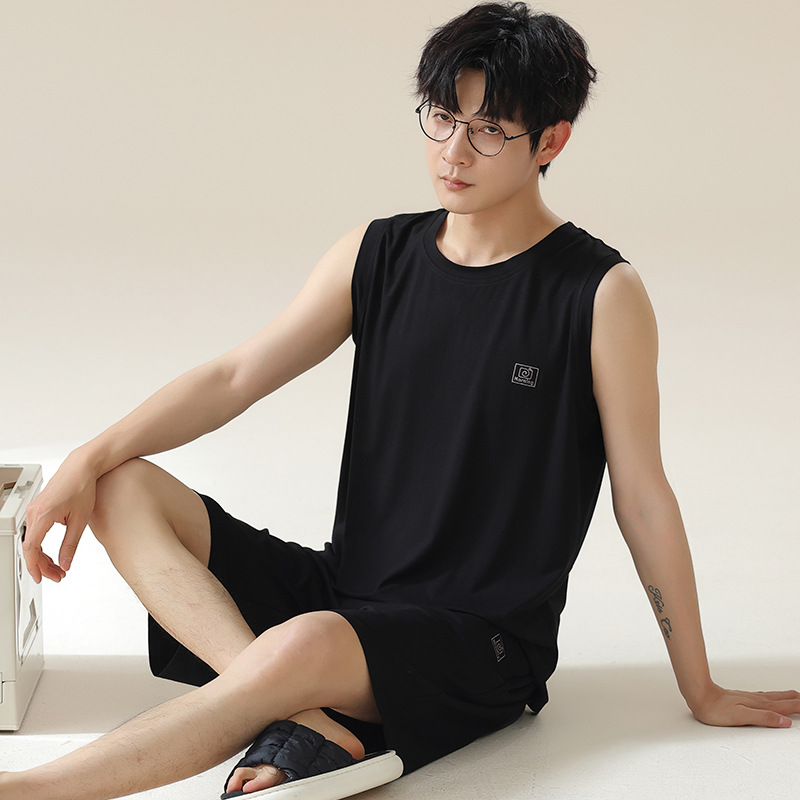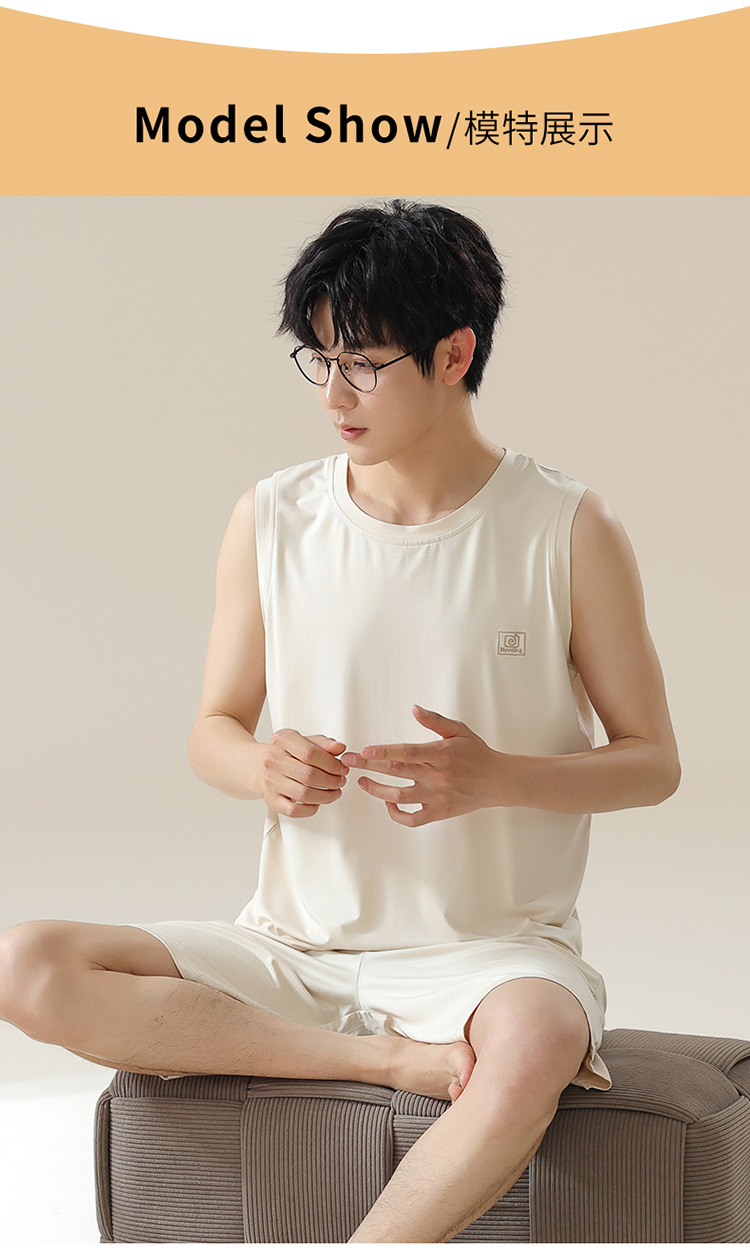 남성용 잠옷, 여름 민소매 조끼, 모달 시원한 느낌, 청년 및 중년 남성 여름 얇은 가정복, 야외에서 착용 가능스토어 가기