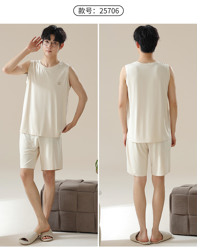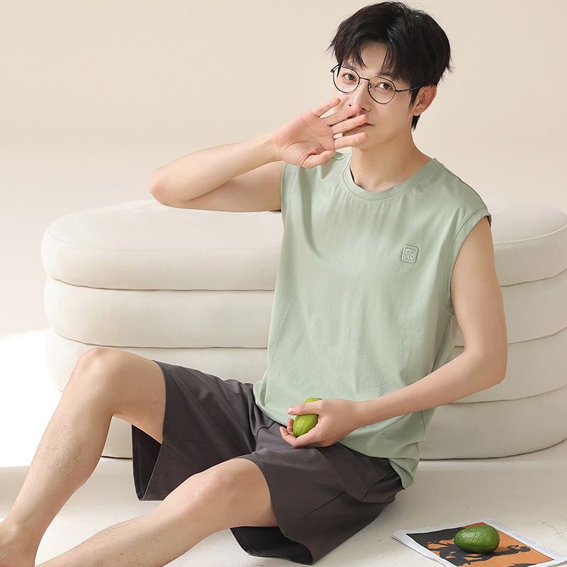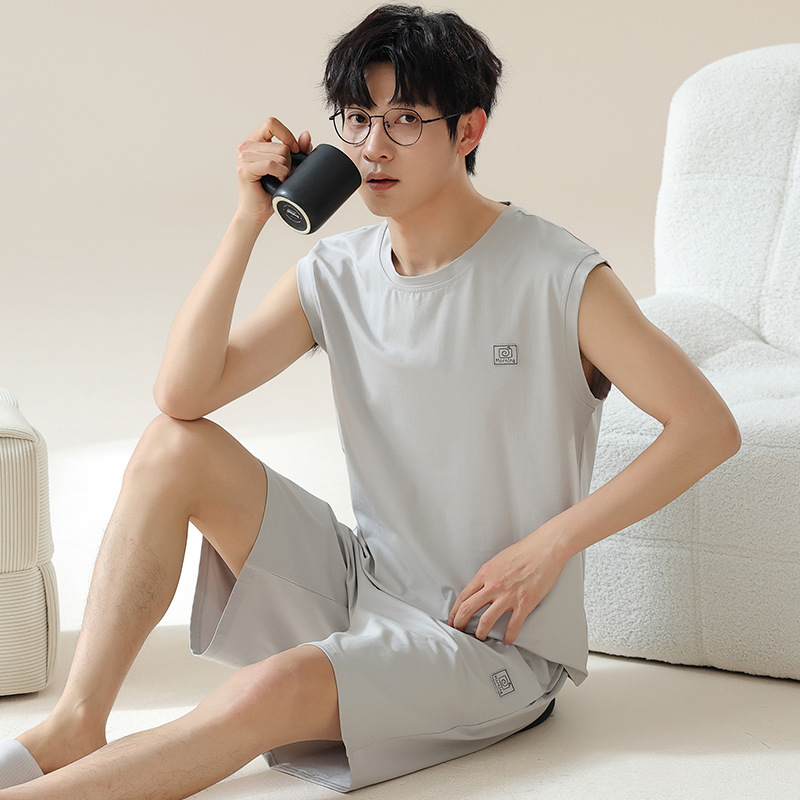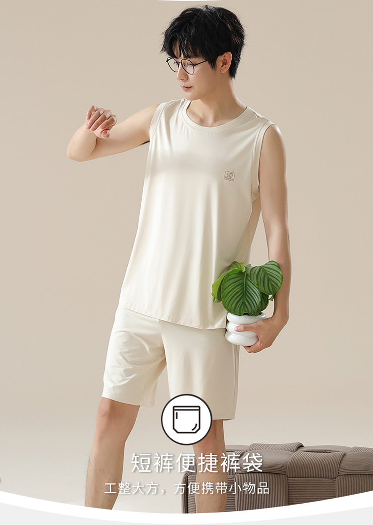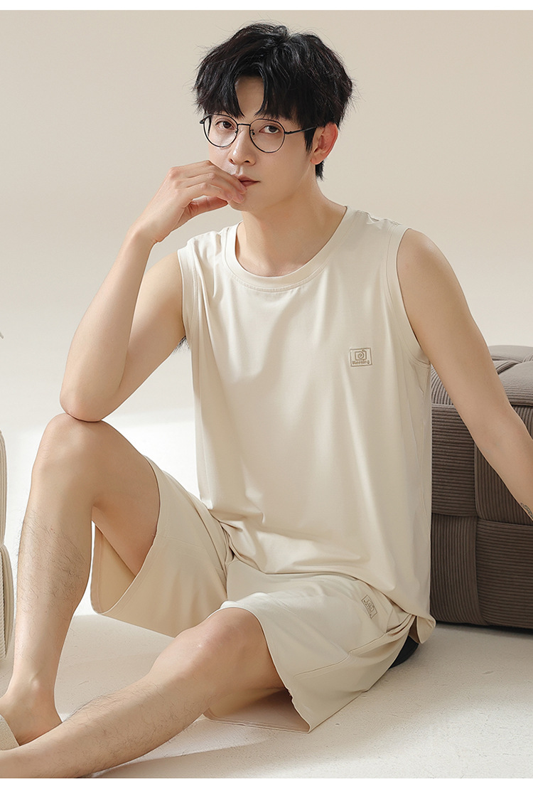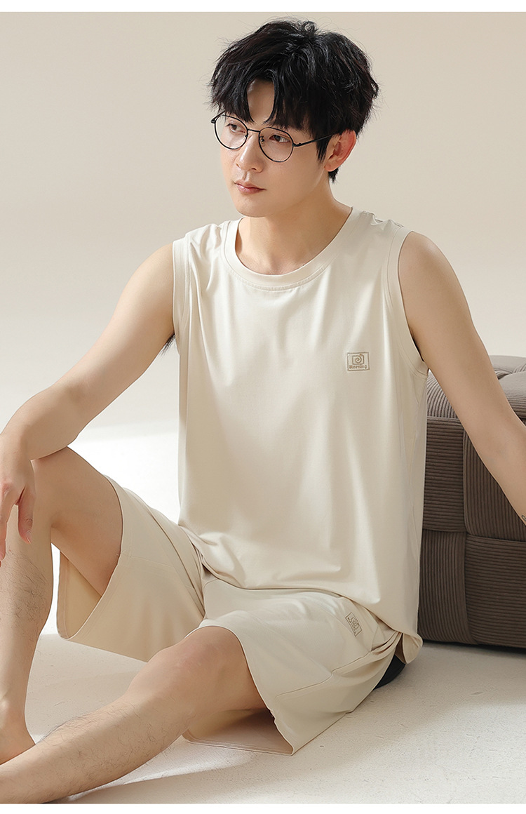 남성용 잠옷, 여름 민소매 조끼, 모달 시원한 느낌, 청년 및 중년 남성 여름 얇은 가정복, 야외에서 착용 가능스토어 가기