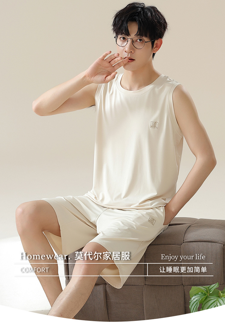 남성용 잠옷, 여름 민소매 조끼, 모달 시원한 느낌, 청년 및 중년 남성 여름 얇은 가정복, 야외에서 착용 가능