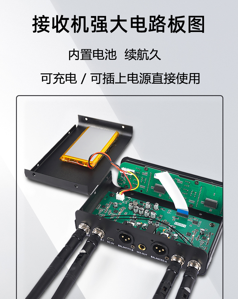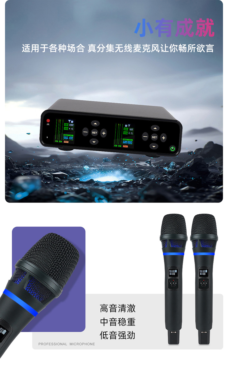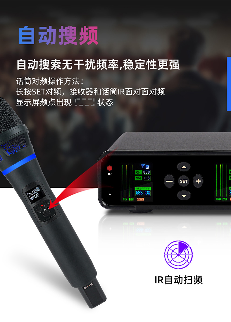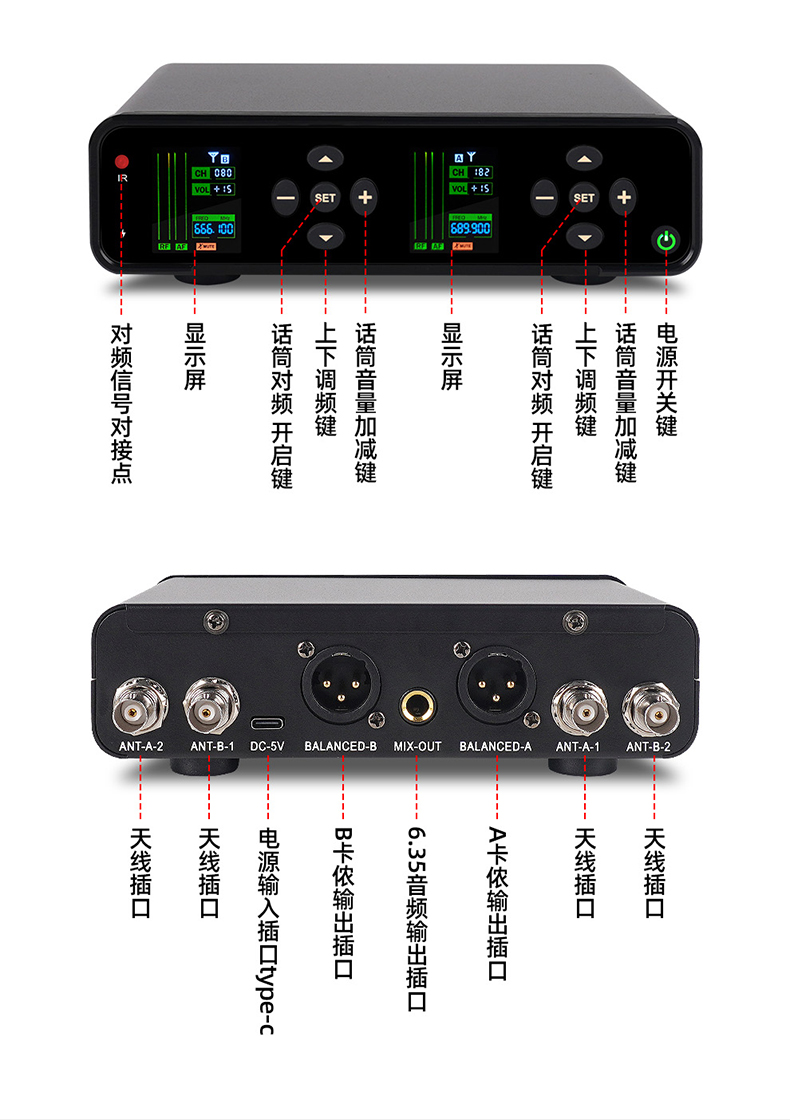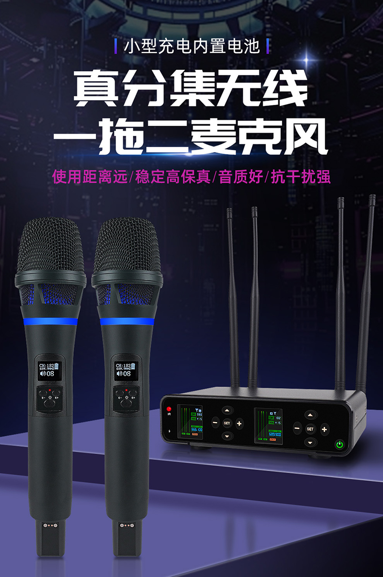 • KS-2 트루 다이버시티 휴대용 1대2 1800m 수신 호스트 내장 리튬 배터리 플래그십 모델(무선 충전실)