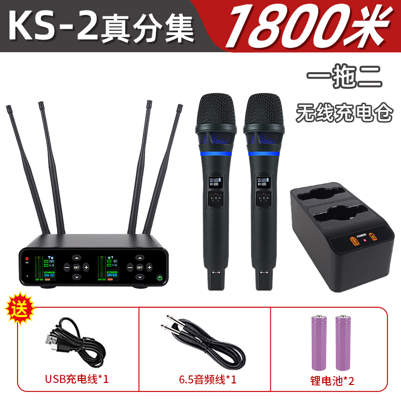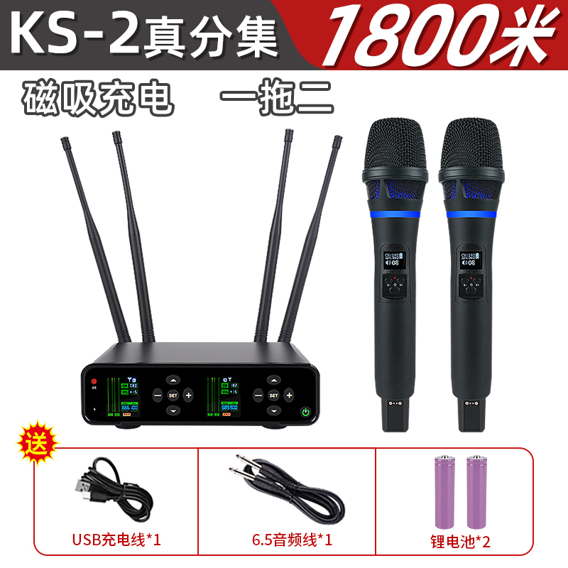 • KS-2 True Diversity 휴대용 1대2 1800m 수신기 호스트 내장 리튬 배터리 플래그십 모델(자기 충전)