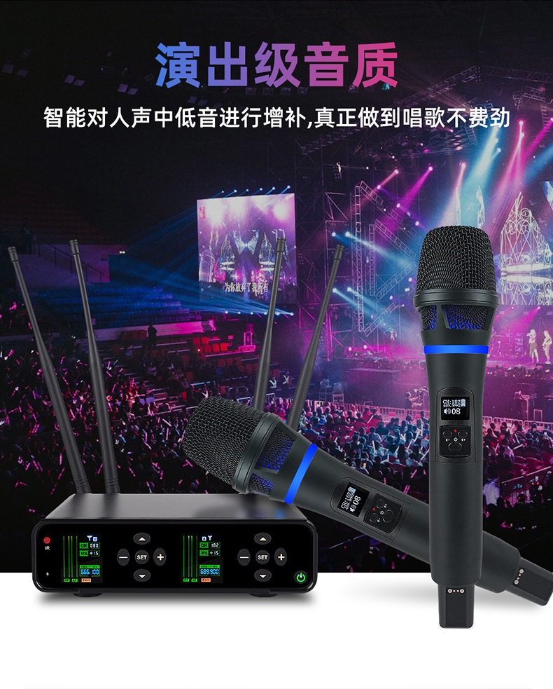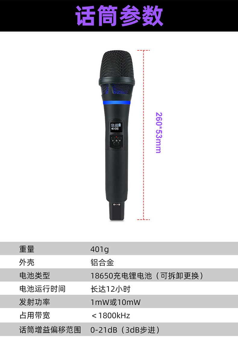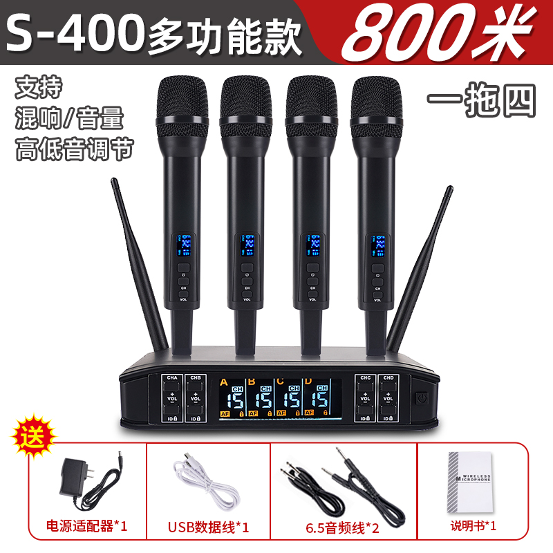 • S-400 휴대용 1대4 800m 수신 다기능 모델(리버브/볼륨/고음 및 저음 지원)