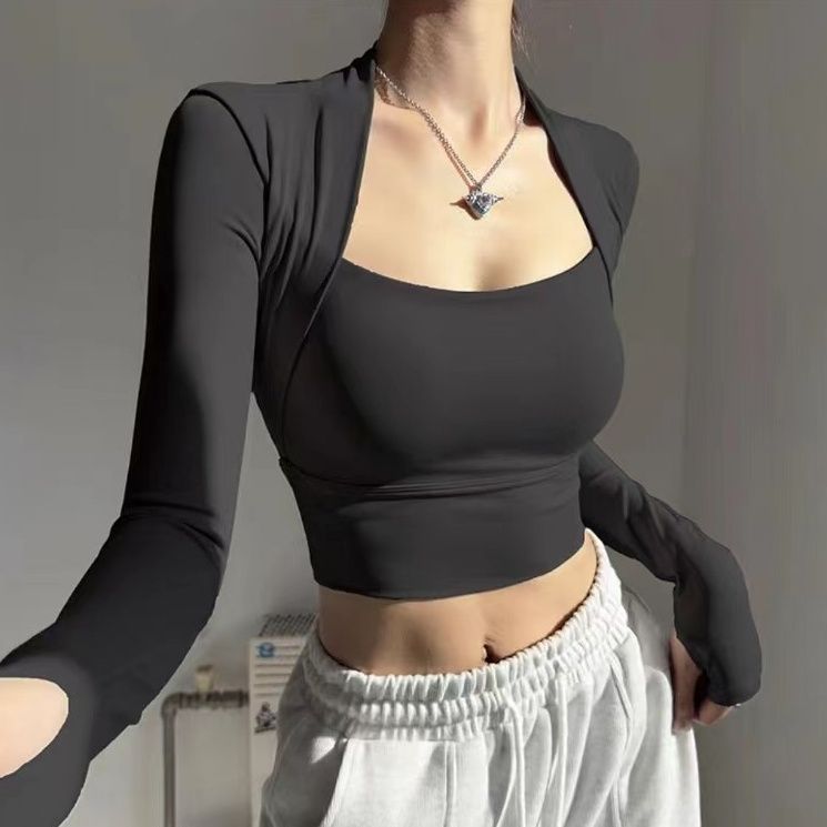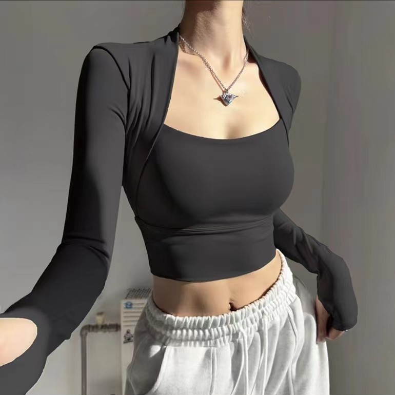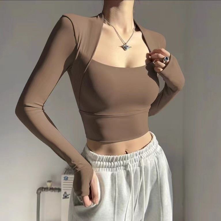 여성을위한 가슴 패드 스포츠 긴팔 러닝 피트니스 요가 착용 2025 새로운 슬리밍 타이트 탑스토어 가기