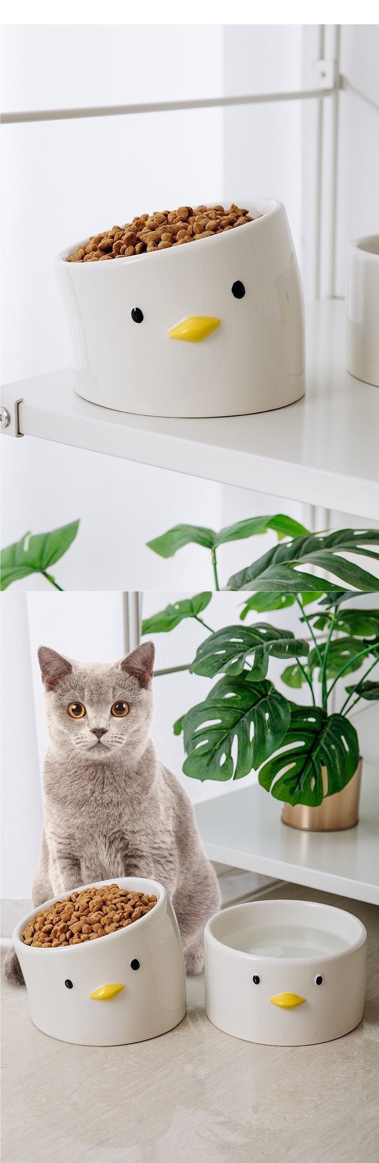 귀여운 고양이 사료 그릇, 고양이 애완 동물 고양이 그릇, 도자기 그릇, 먹는 그릇, 마시는 그릇, 이중 그릇, 세라믹 스테인레스 스틸 Xianzhixin