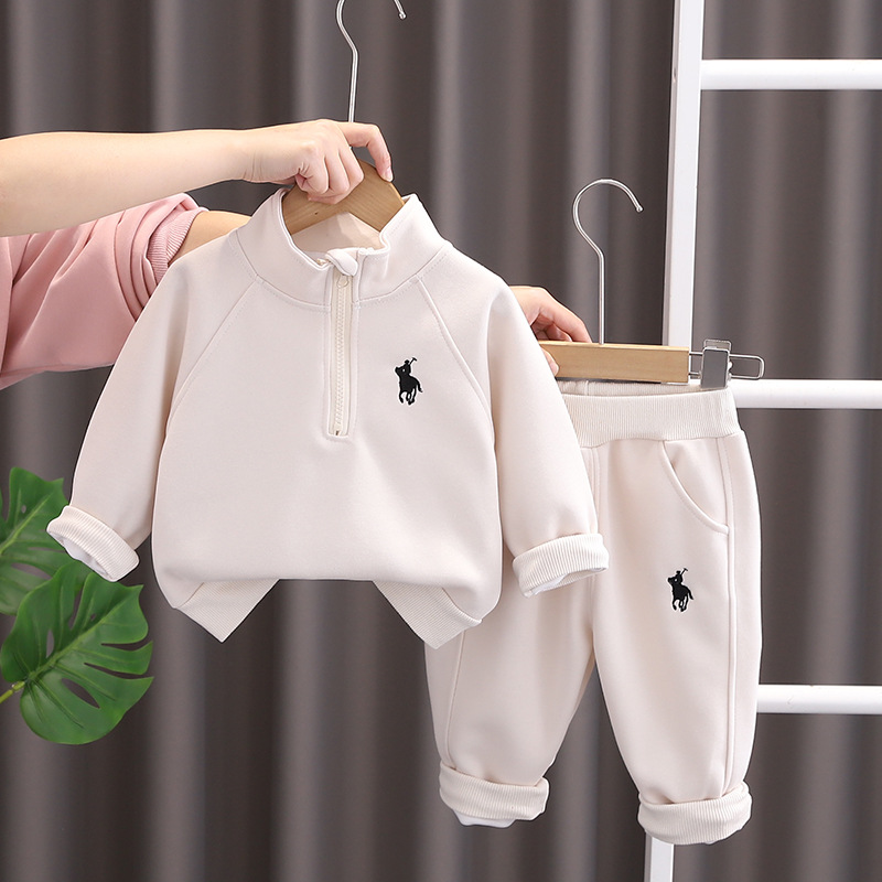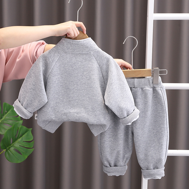 소년 정장 새로운 어린이 아기 옷 어린이 봄, 가을 스탠드 업 칼라 풀오버 스웨트 투피스 세트 대외 무역 도매스토어 가기