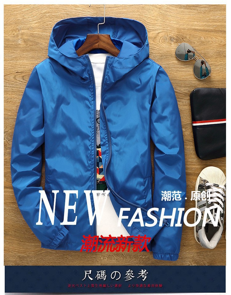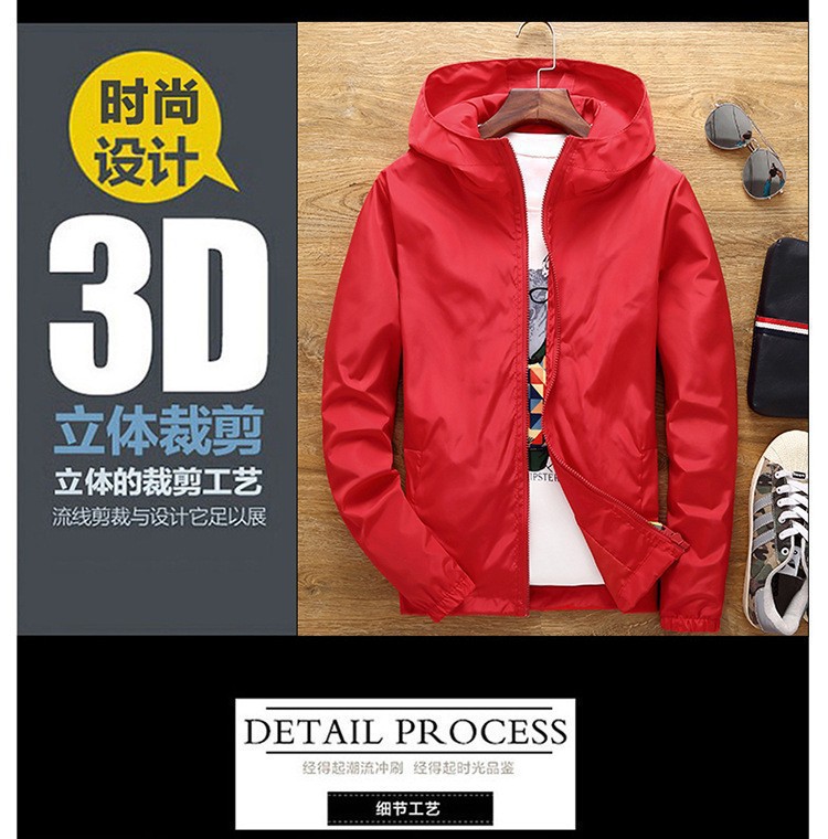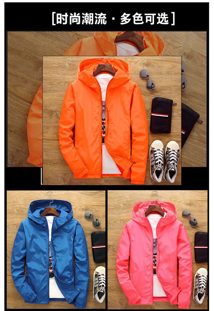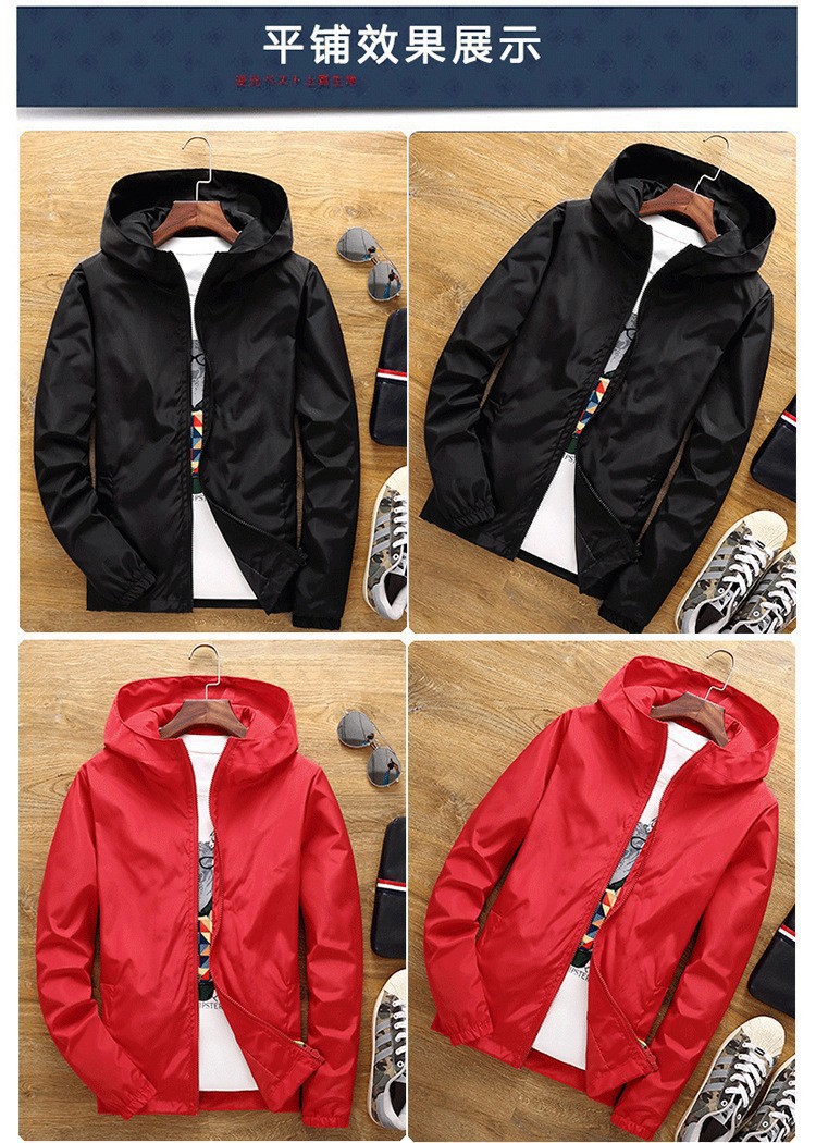남성용 새 코트, 야외 캐주얼 재킷, 봄, 가을 방풍 얇은 재킷, 후드 솔리드 컬러 인쇄 광고 의류스토어 가기