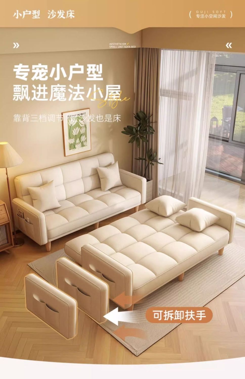 거실용 소파베드, 겸용, 접이식, 수면용, 접이식 침대, 다기능 크림풍 소파베드, 투인원스토어 가기