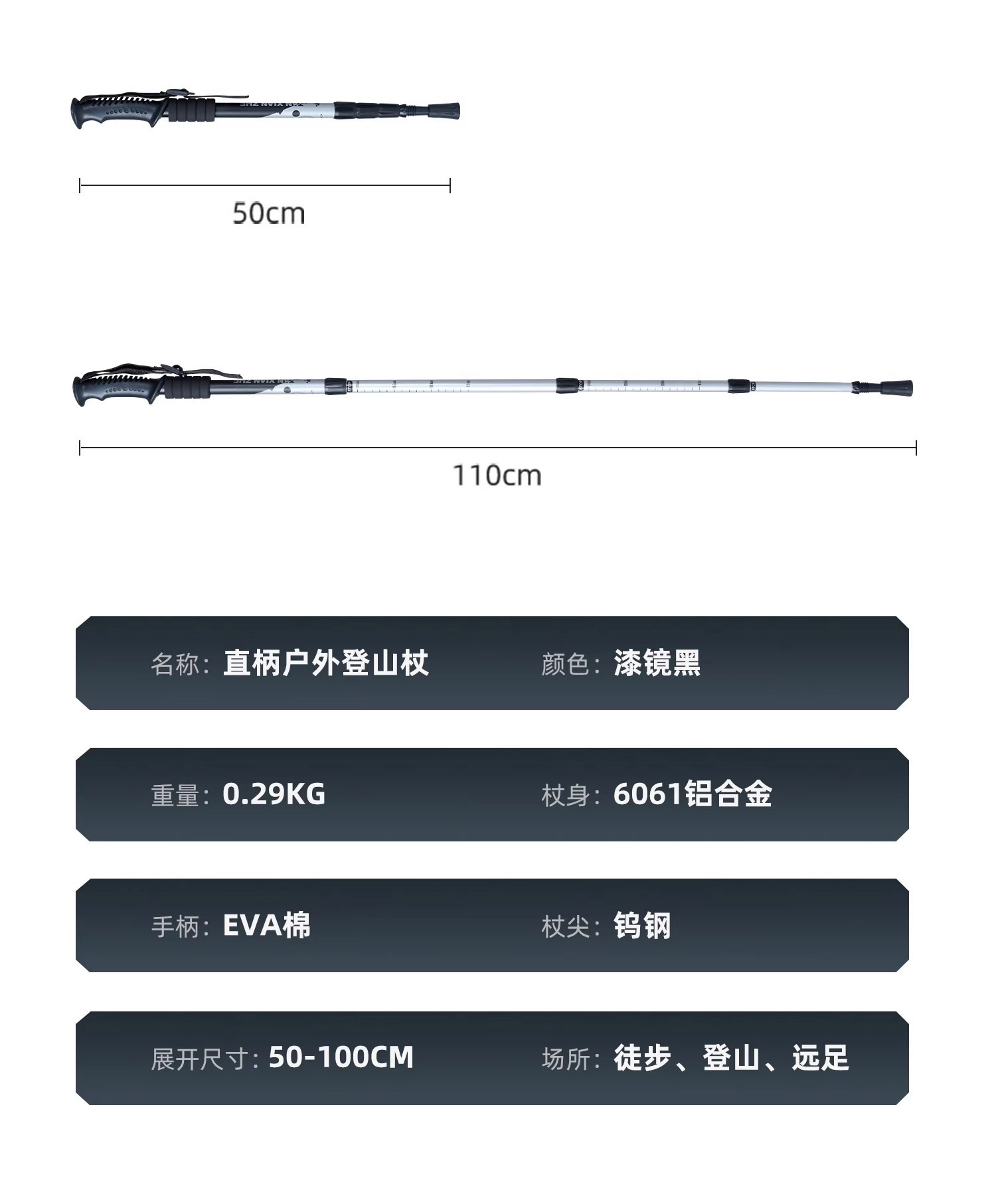 • [보급형 모델] 텔레스코픽 트레킹 폴 - 블랙(6061 알루미늄 합금)