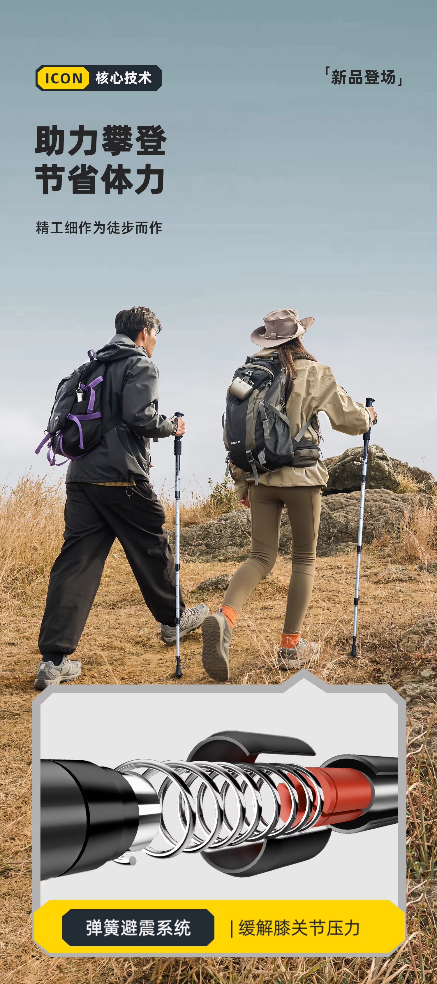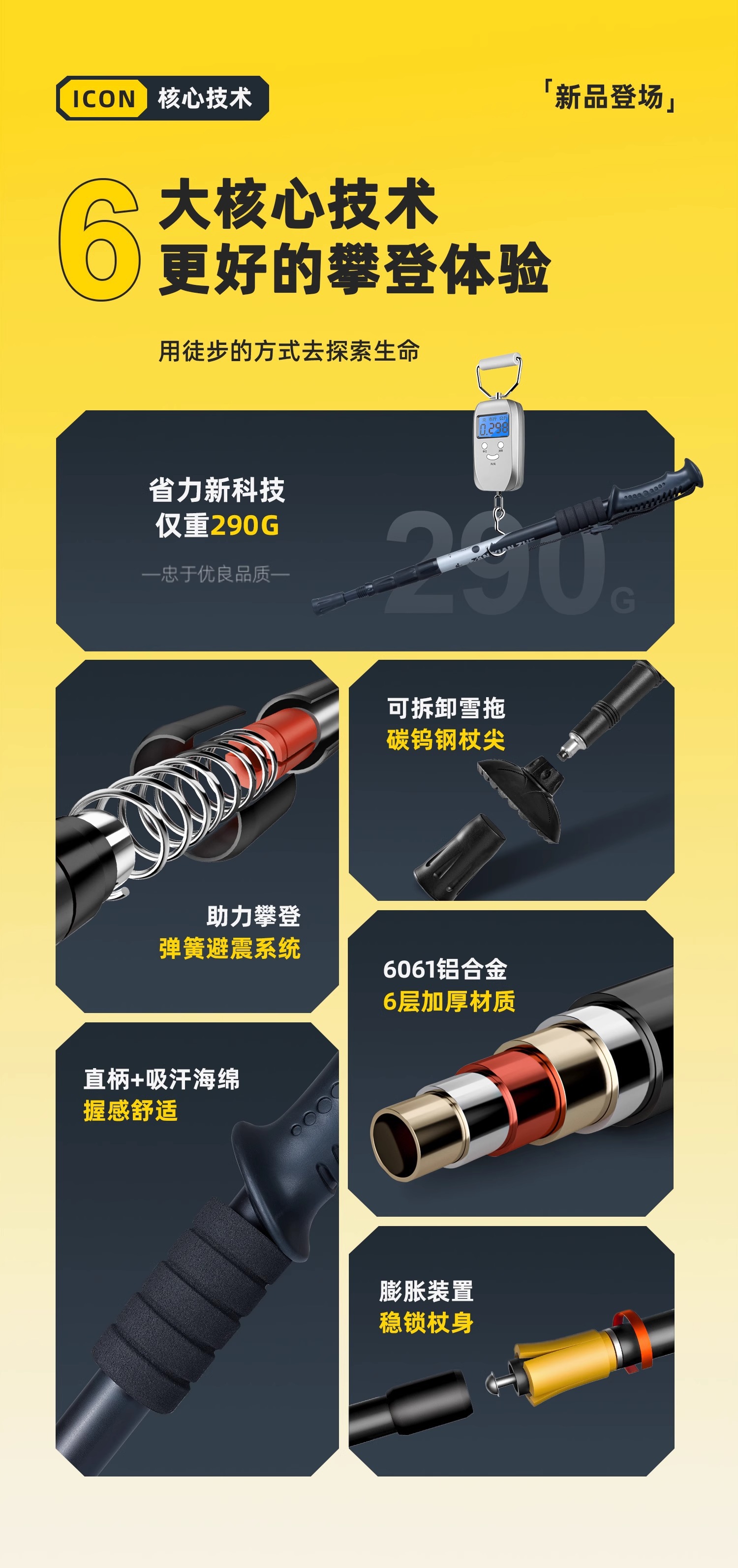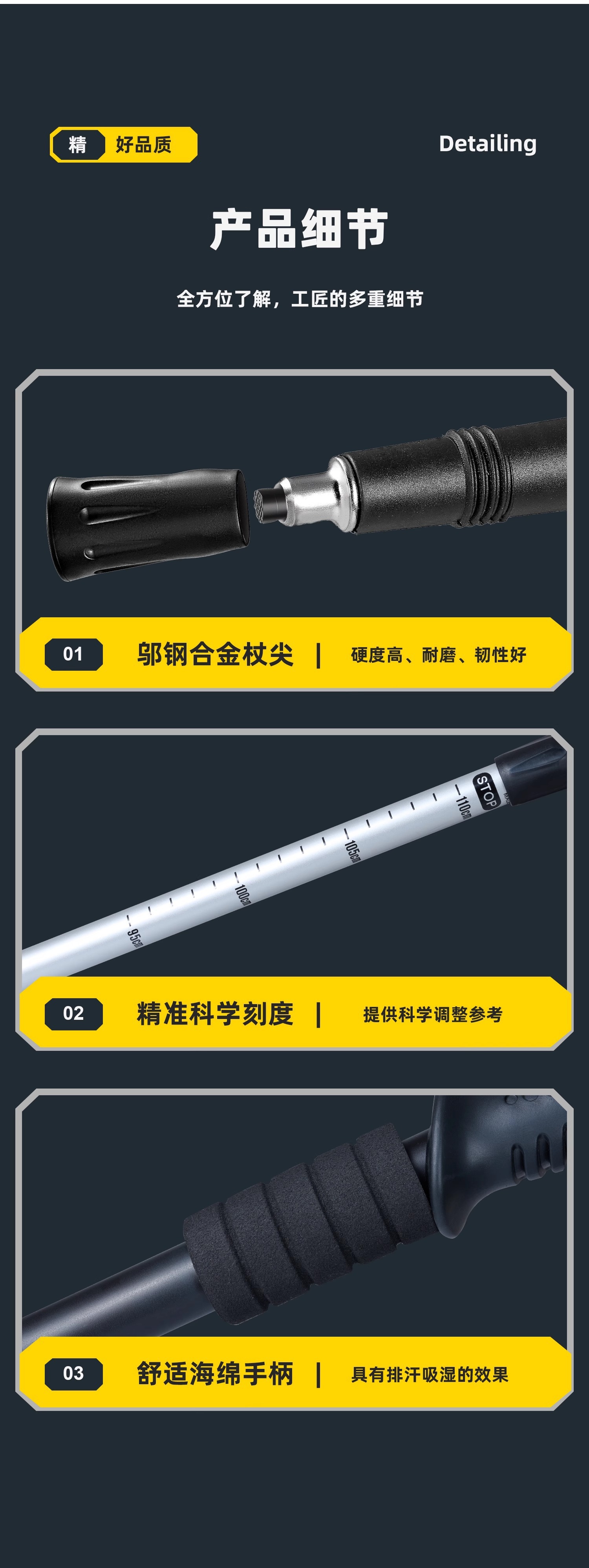 • [업그레이드 모델] 접이식 트레킹 폴 - 노란색(7075 알루미늄 합금)