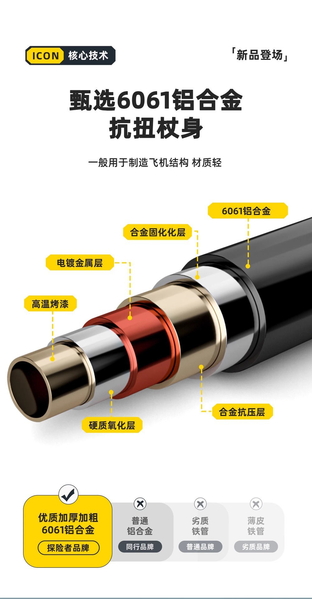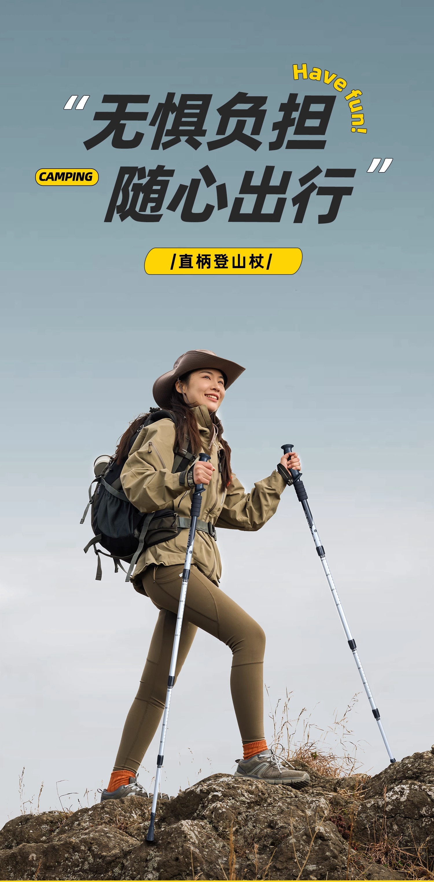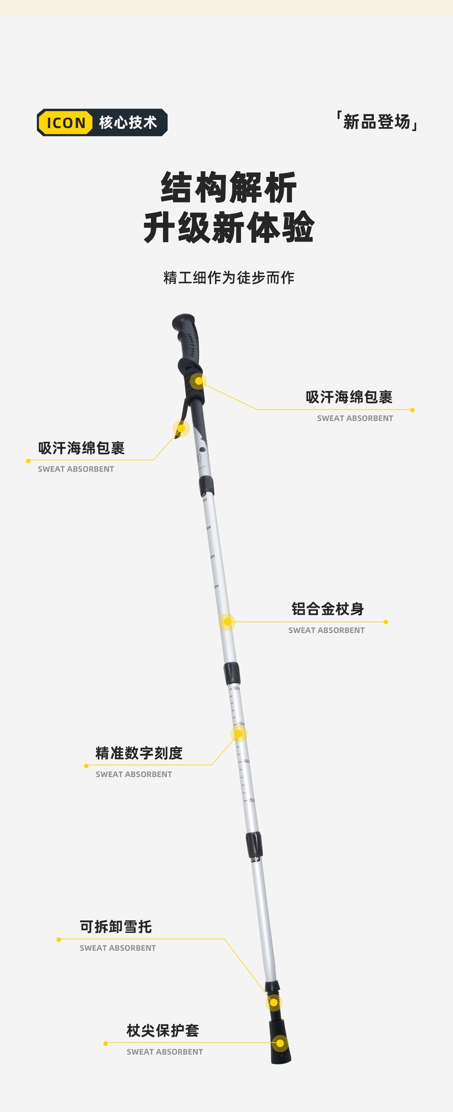 • [업그레이드 모델] 접이식 트레킹 폴 - 노란색(7075 알루미늄 합금)
