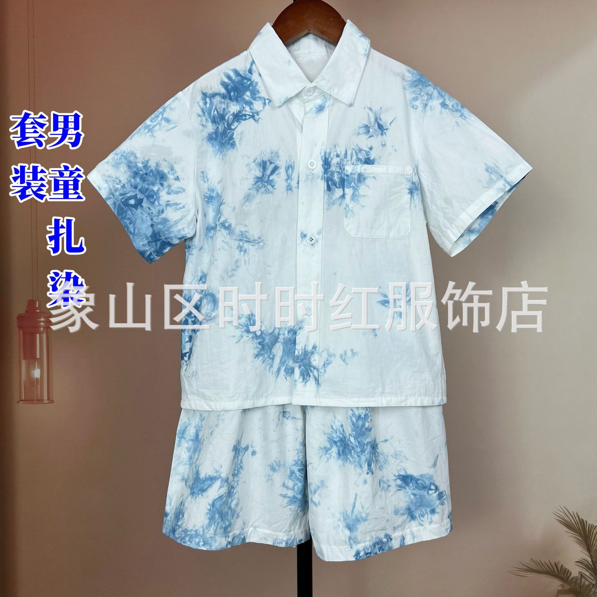 타이 염색 아동 의류 여름 새로운 수제 타이 염색 식물 염색 소년과 소녀 서스펜더 스커트 여행 민족 의류 도매