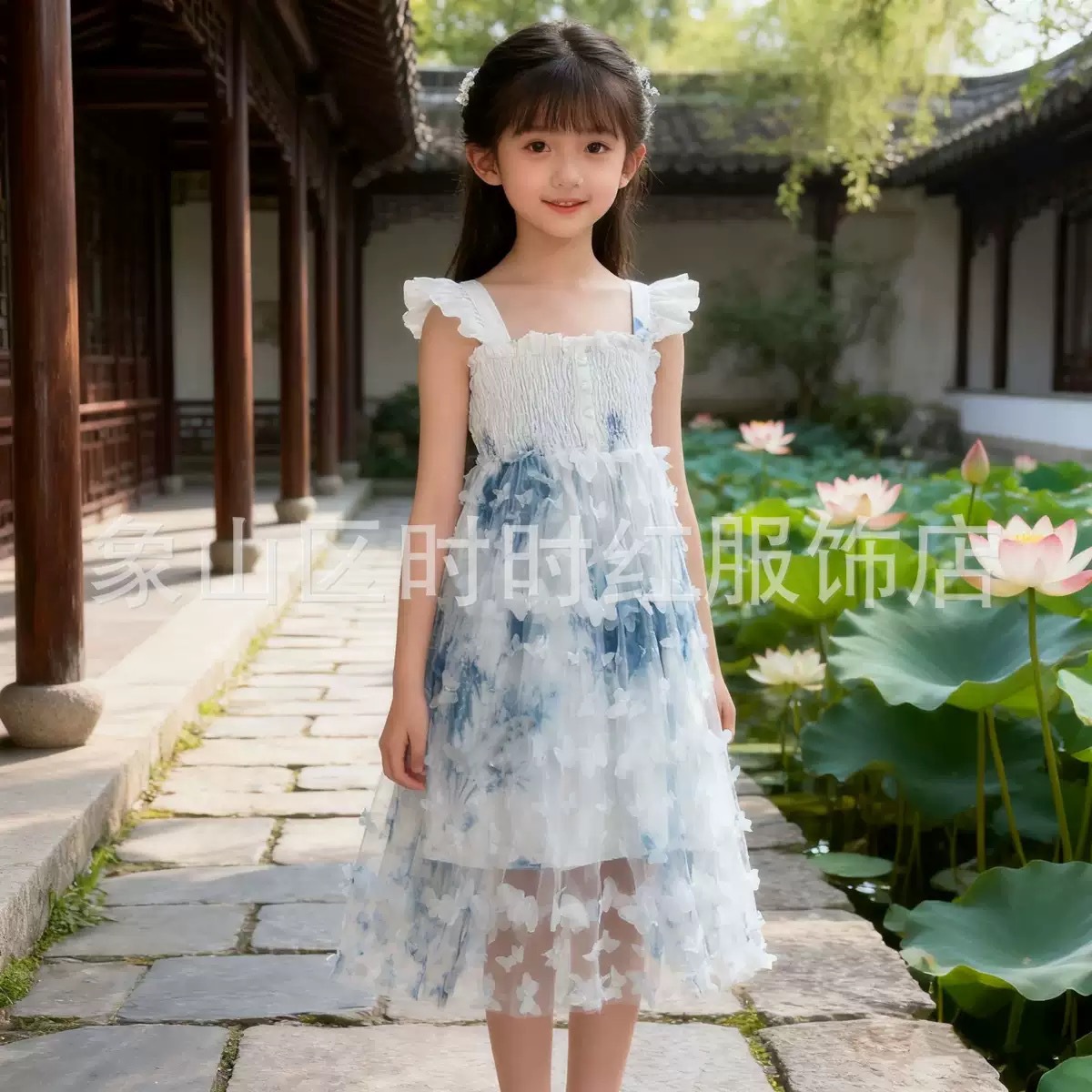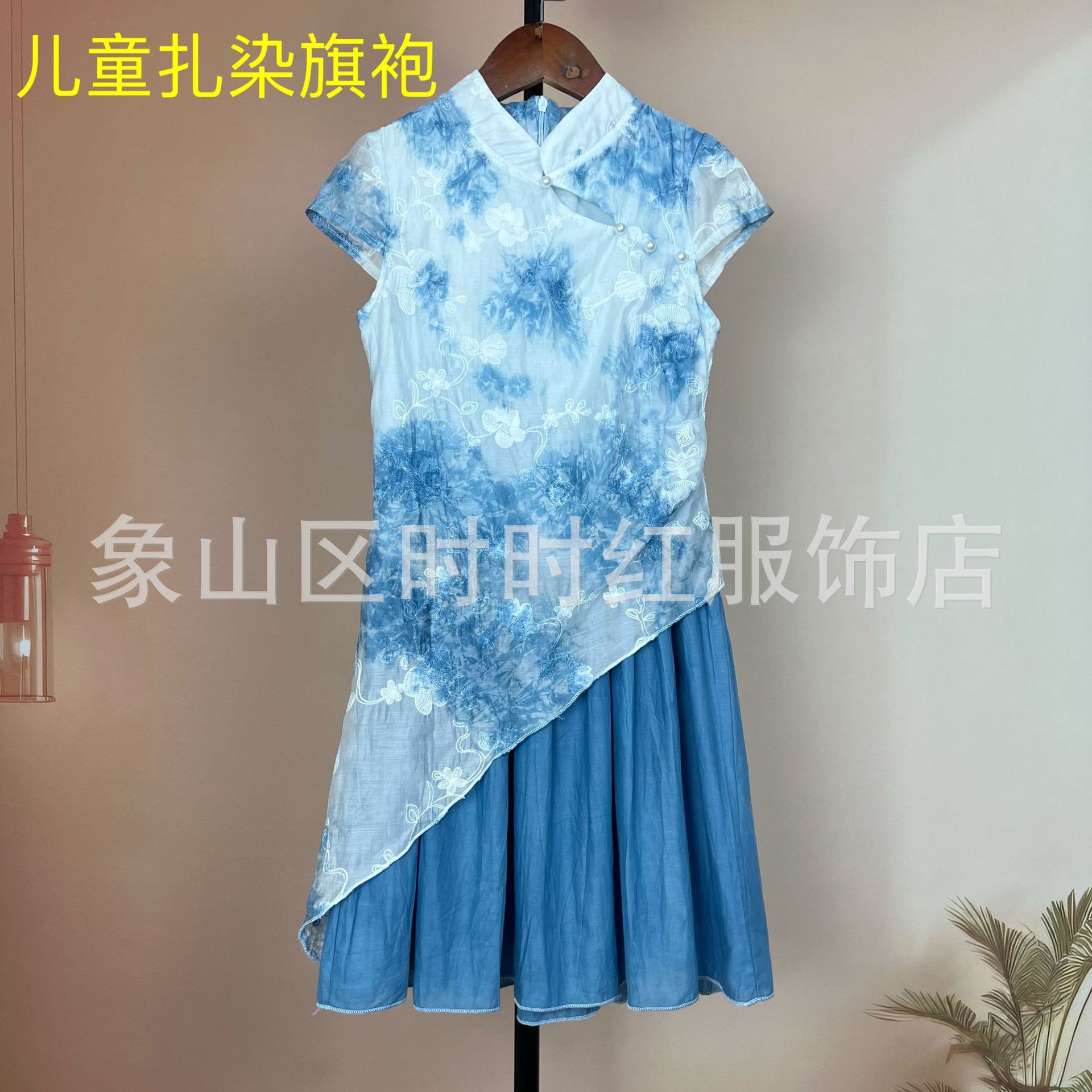 타이 염색 아동 의류 여름 새로운 수제 타이 염색 식물 염색 소년과 소녀 서스펜더 스커트 여행 민족 의류 도매스토어 가기