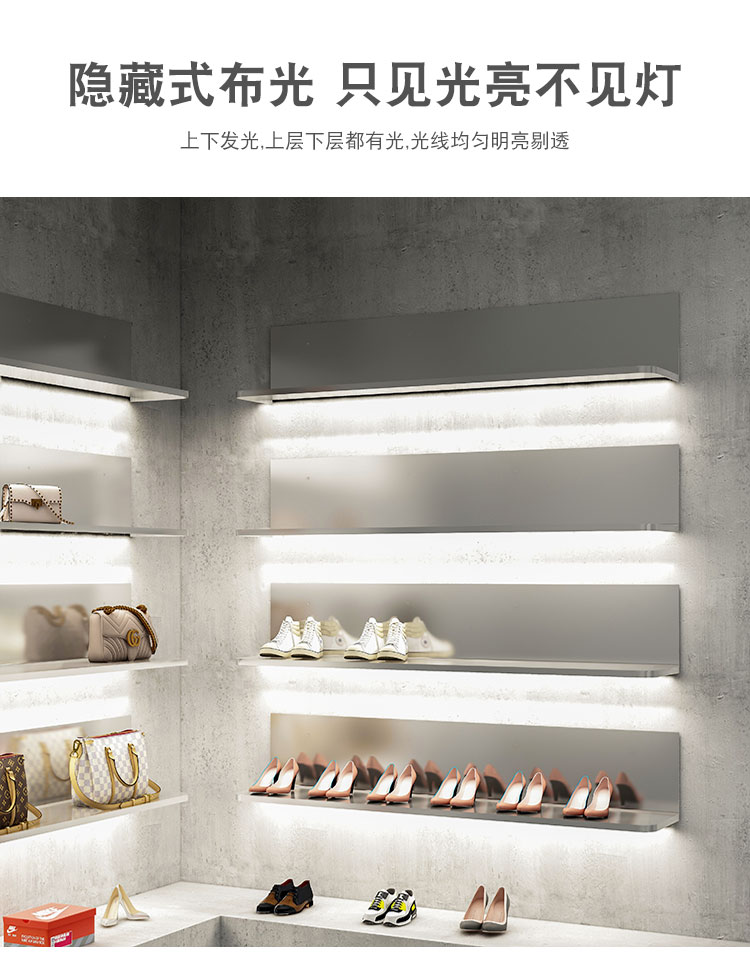 옷가게 신발 및 가방 보관함 스테인레스 스틸 선반 벽 다층 신발장 디스플레이 랙 라이브 방송실 디스플레이 랙
