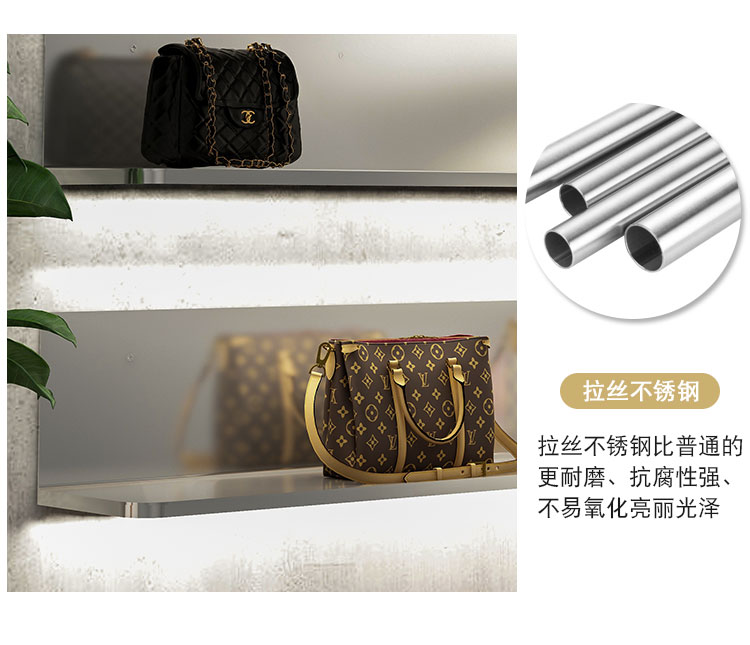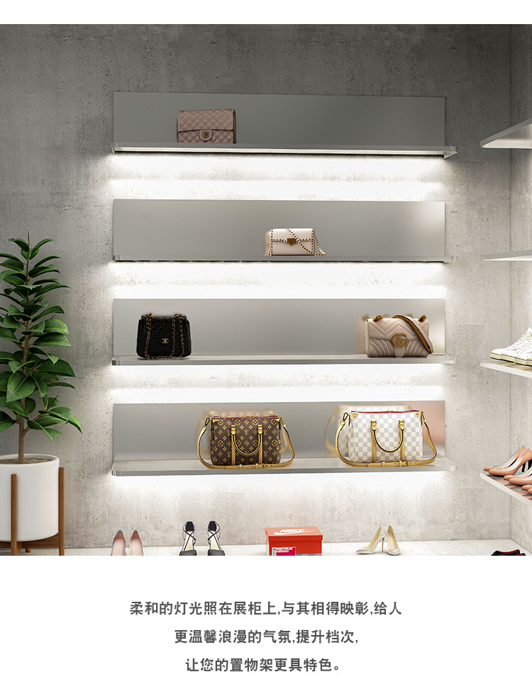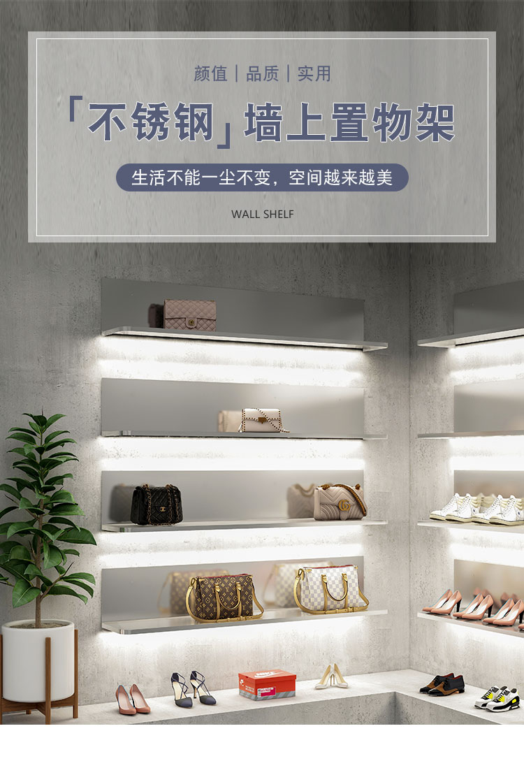 옷가게 신발 및 가방 보관함 스테인레스 스틸 선반 벽 다층 신발장 디스플레이 랙 라이브 방송실 디스플레이 랙스토어 가기