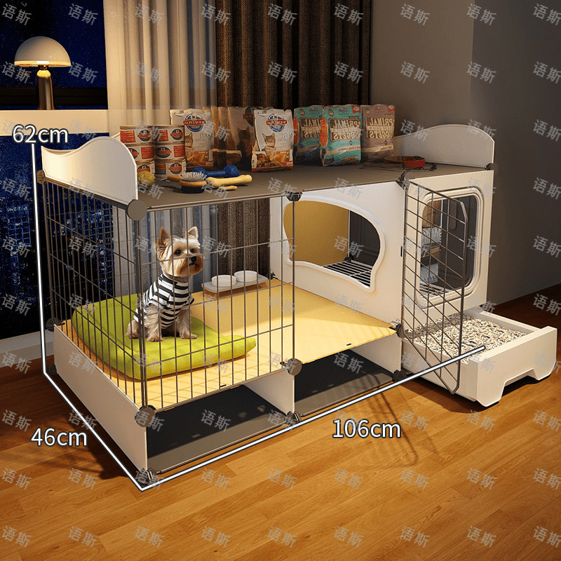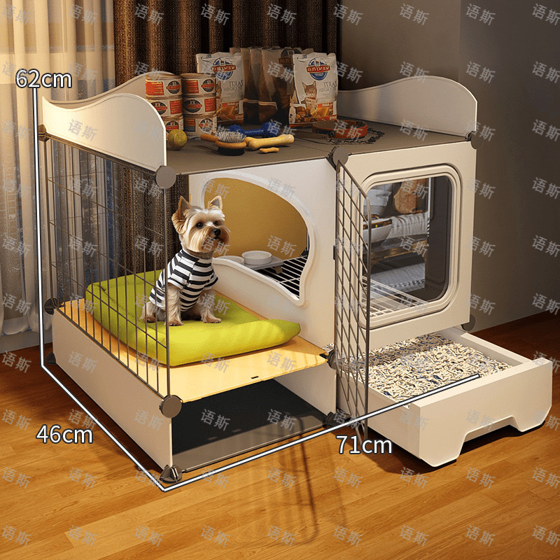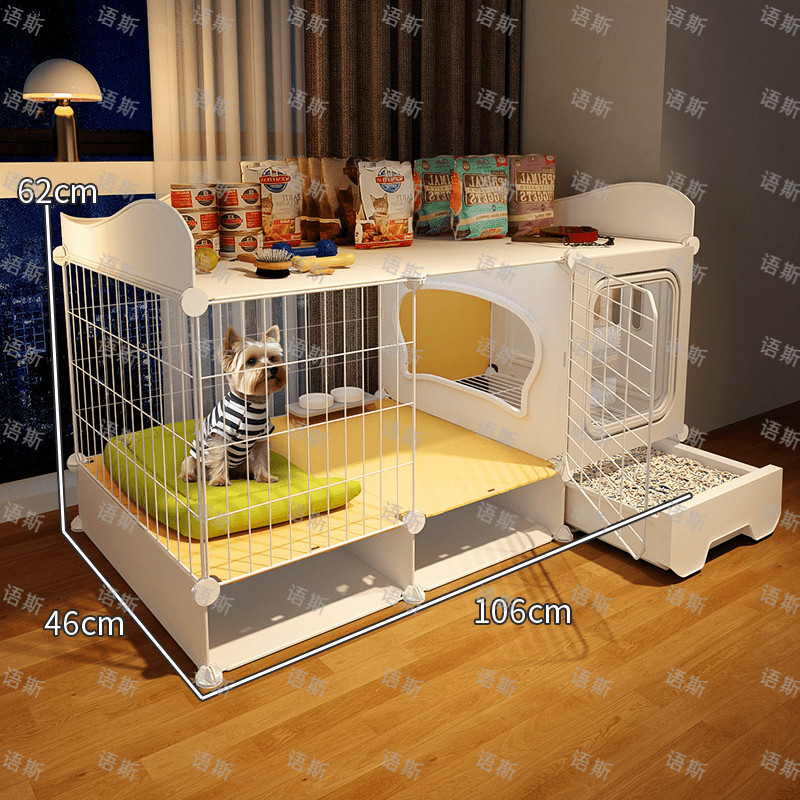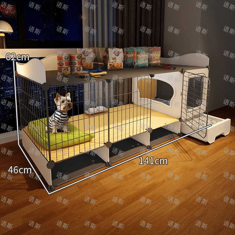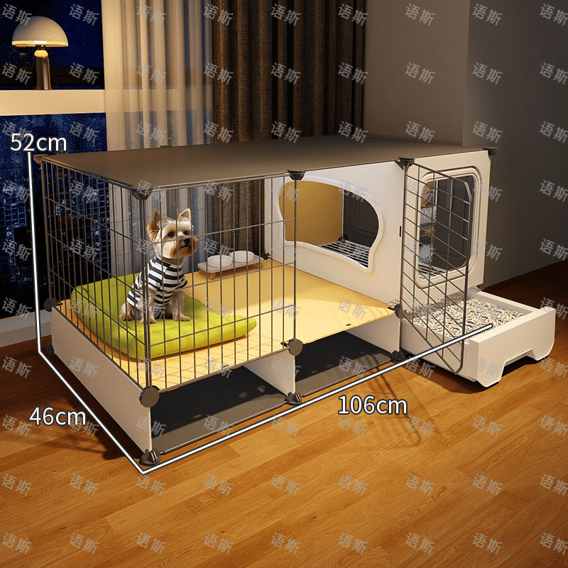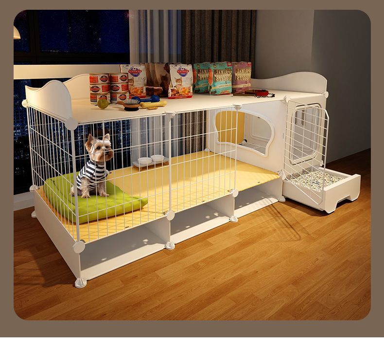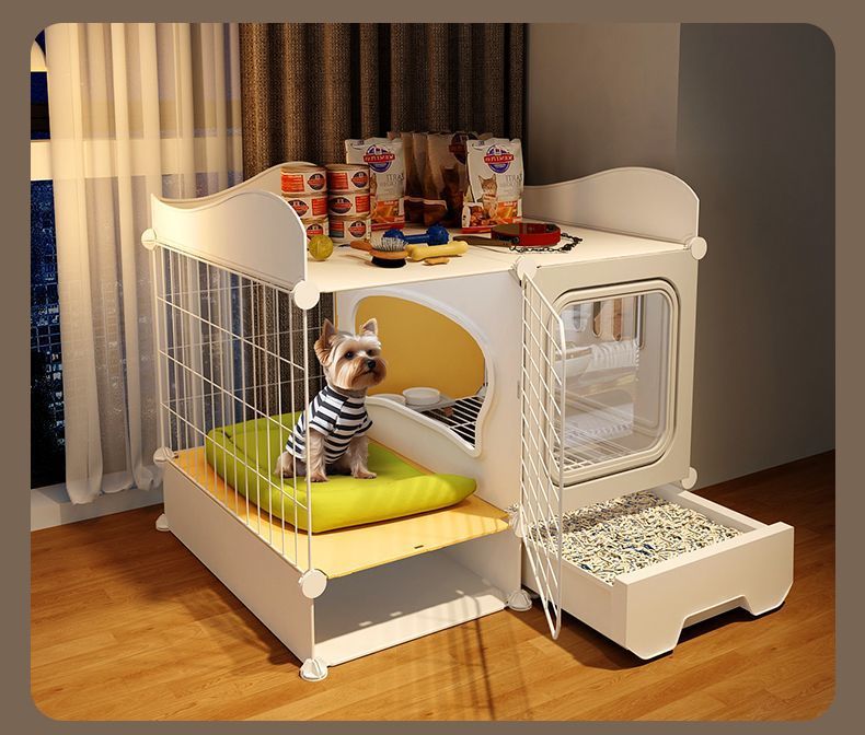 개 케이지, 개 케이지, 화장실이 있는 개 빌라, 실내 전용 자동 배설물 청소 애완 동물 케이지 개집