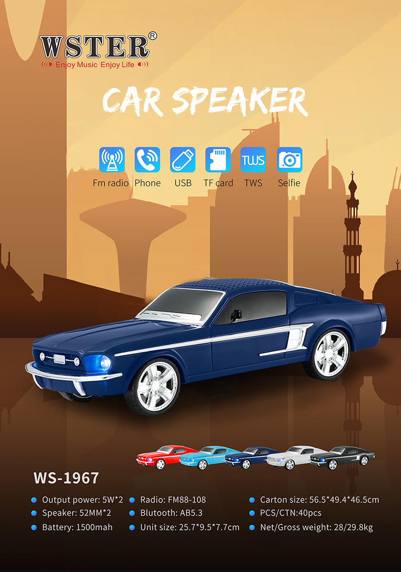 대외 무역 국경 간 WS-1967 포드 머스탱 GT 블루투스 스피커 다기능 복고풍 자동차 모델 오디오 선물