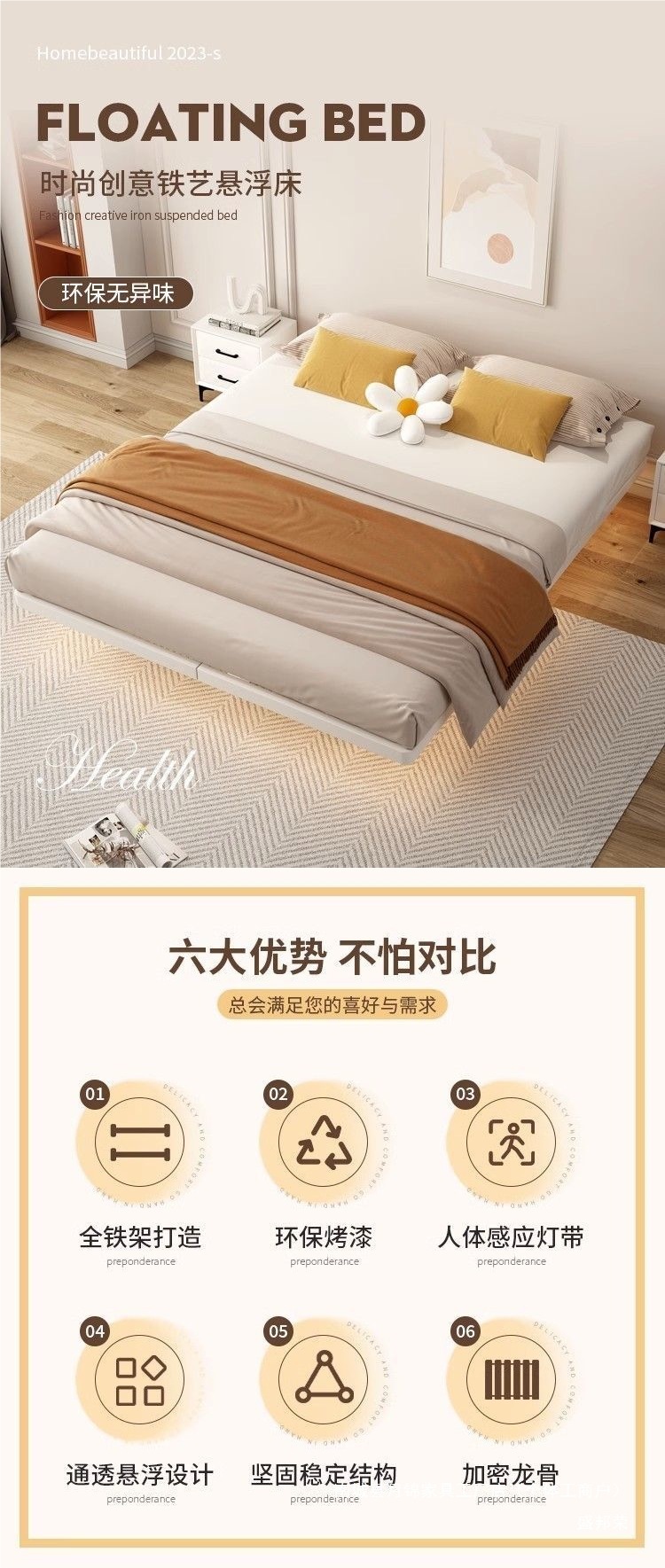 공중부양 침대, 모던하고 심플한 침대 없는 철제 프레임, 철제 프레임, 마스터 침실 더블 침대, 다다미 프레임, 공중부양 침대