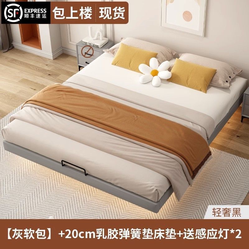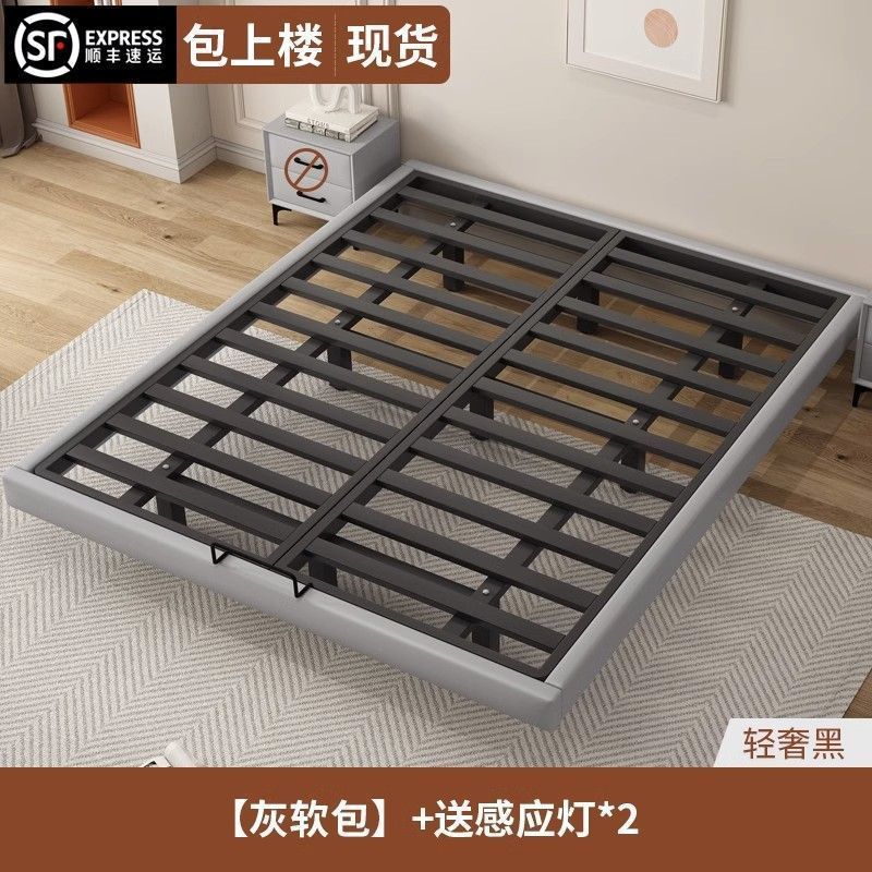 • 그레이 소프트 패키지 서스펜션 침대 [라이트 럭셔리 블랙] - 센서 라이트 스트립 x2