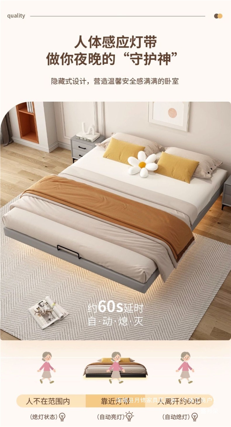 • 플로팅 침대 침대 프레임 [라이트 럭셔리 블랙] - 센서 라이트 스트립 x2