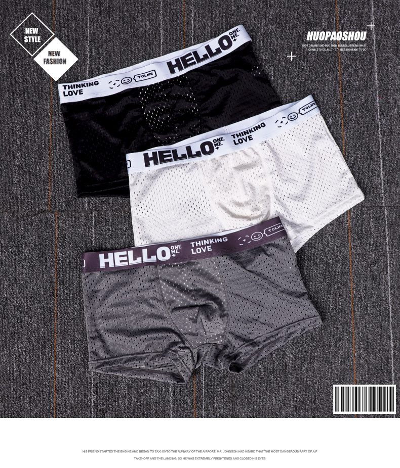 아이스 실크 남성 속옷 여름 얇은 복서 팬티 메쉬 통기성 복서 팬티 편안하고 시원한 여름 얇은 바지