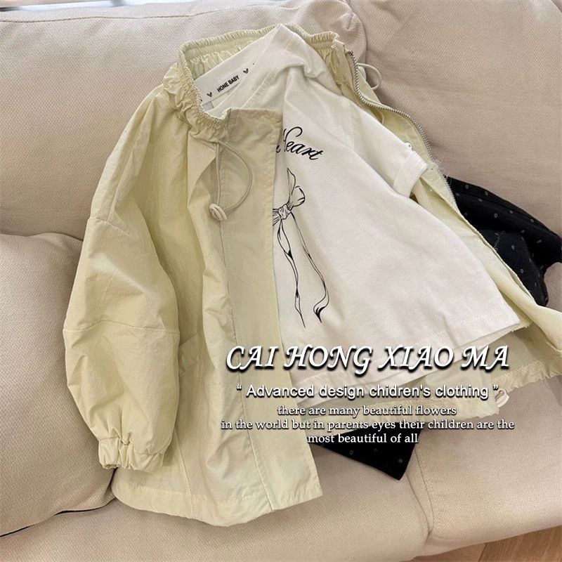 한국 아동복 여아 재킷 2025 봄 가을 새로운 스타일 아동 스타일 긴팔 얇은 방풍 재킷 유행 상의