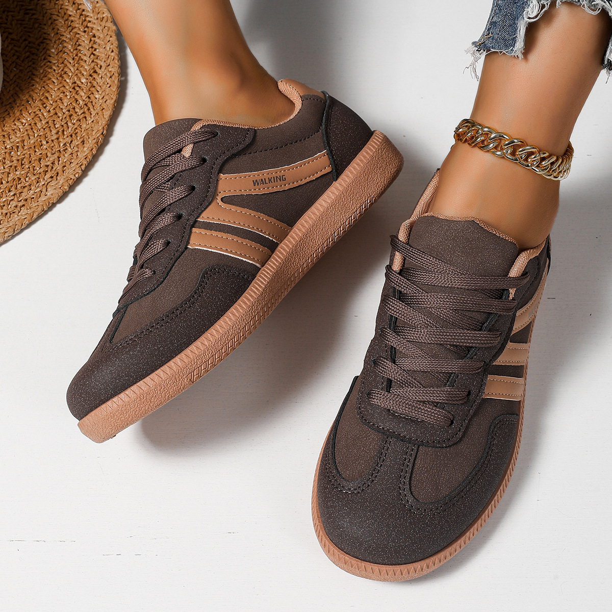 스팟 크로스보더 여성용 대형 육군 훈련 신발 운동화 2025 새로운 유럽과 미국의 복고풍 컬러 매칭 여성용 플랫 슈즈