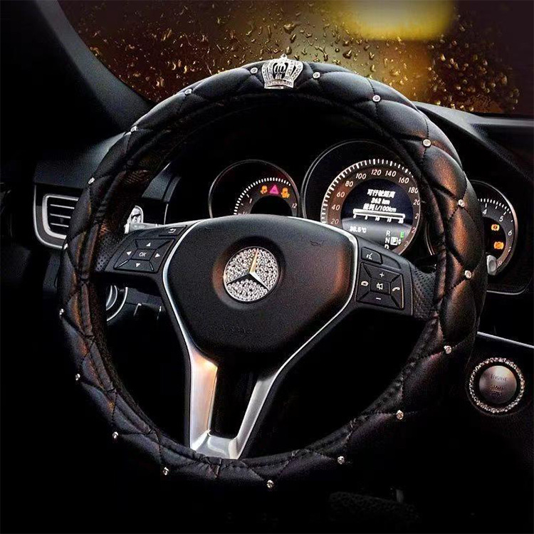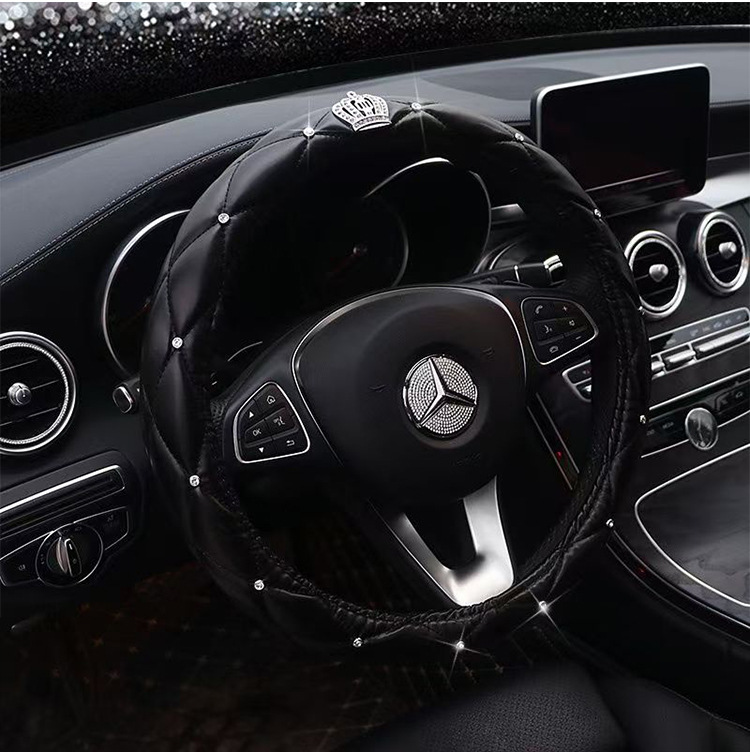 세련된 자동차 다이아몬드 크라운 380 스티어링 휠 커버, 남성과 여성을 위한 올 시즌 고급 절묘한 사각형 스티어링 휠 커버