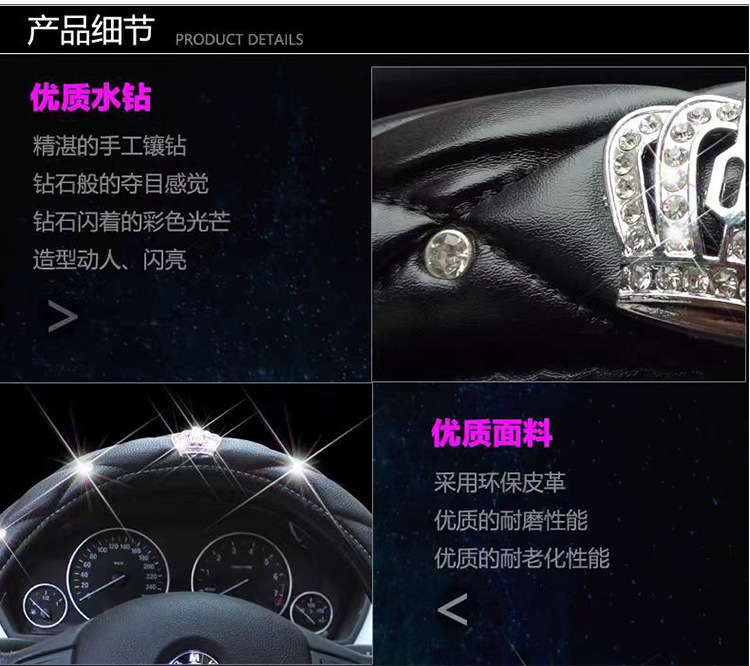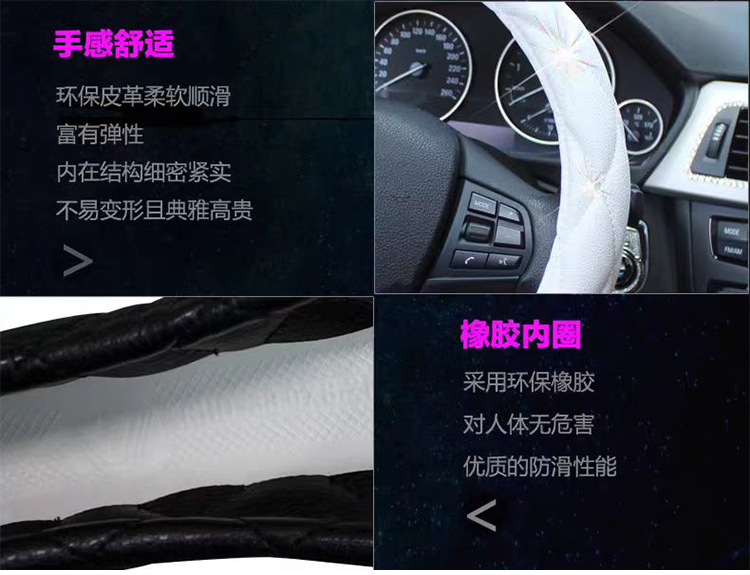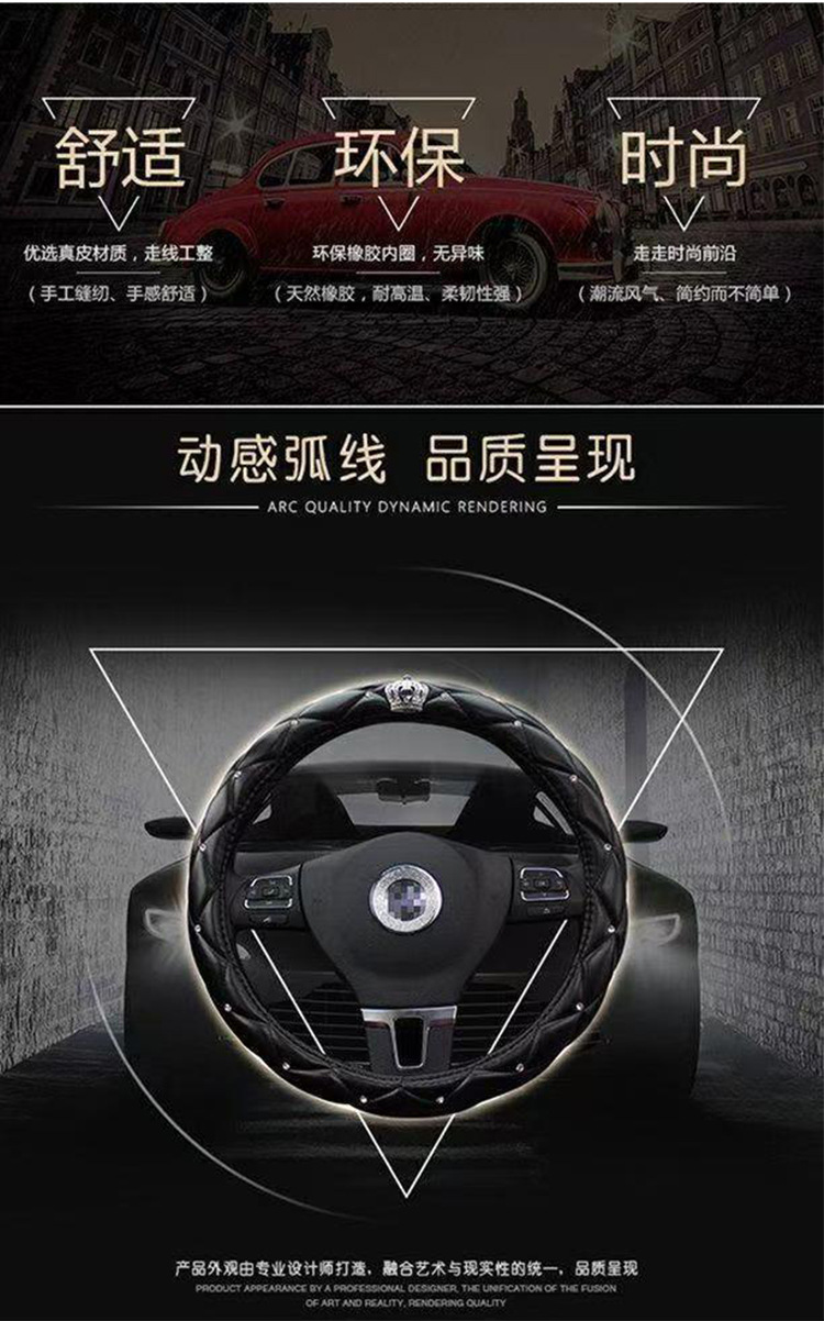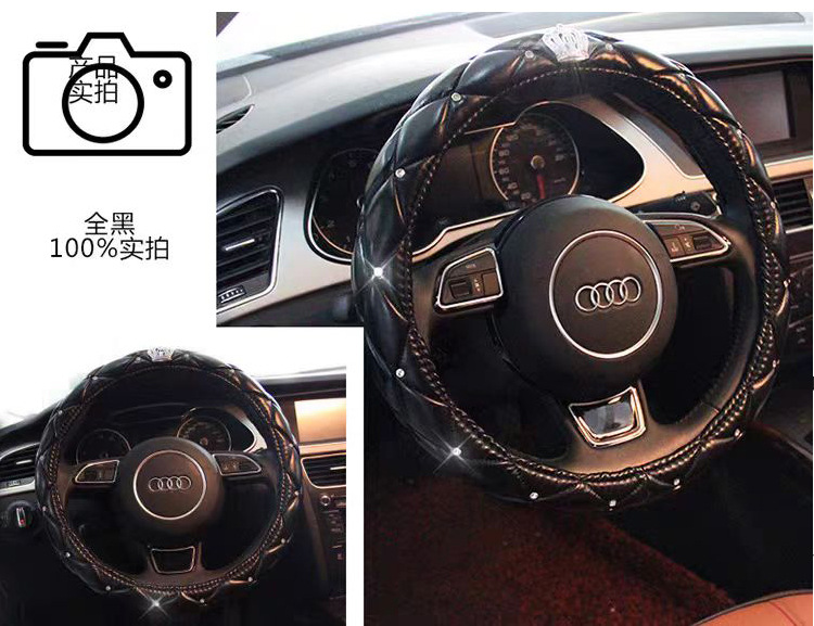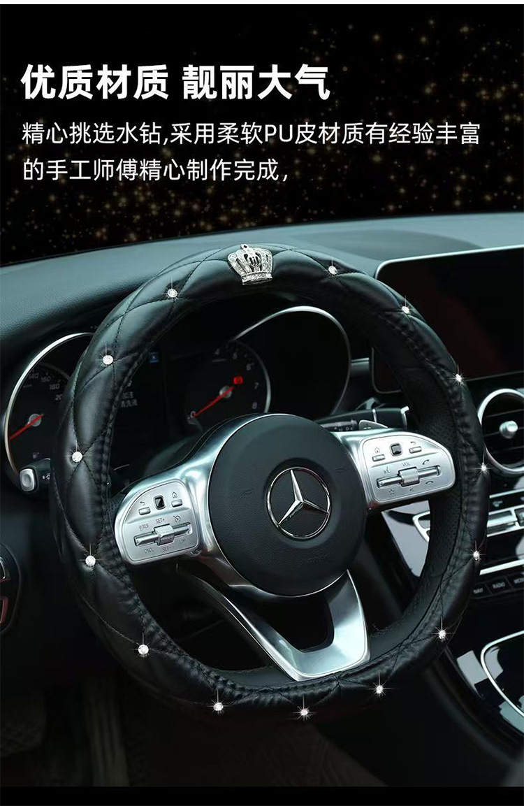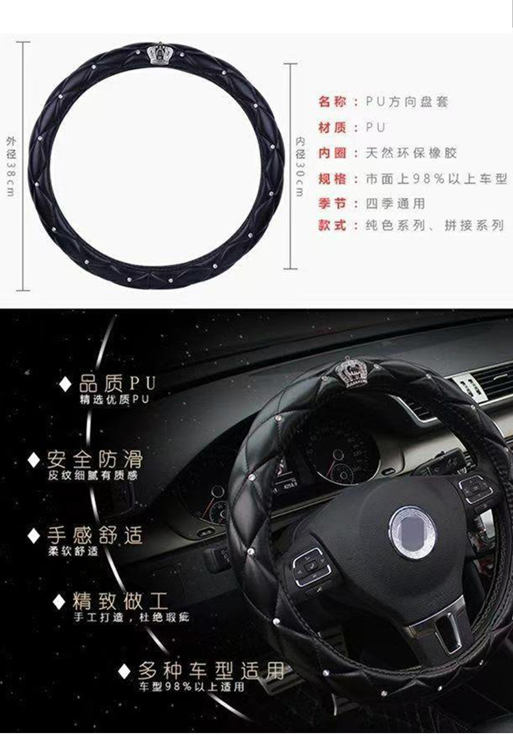세련된 자동차 다이아몬드 크라운 380 스티어링 휠 커버, 남성과 여성을 위한 올 시즌 고급 절묘한 사각형 스티어링 휠 커버스토어 가기