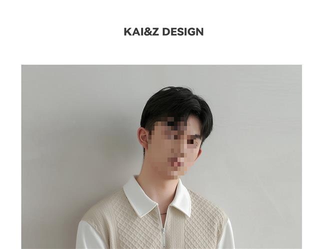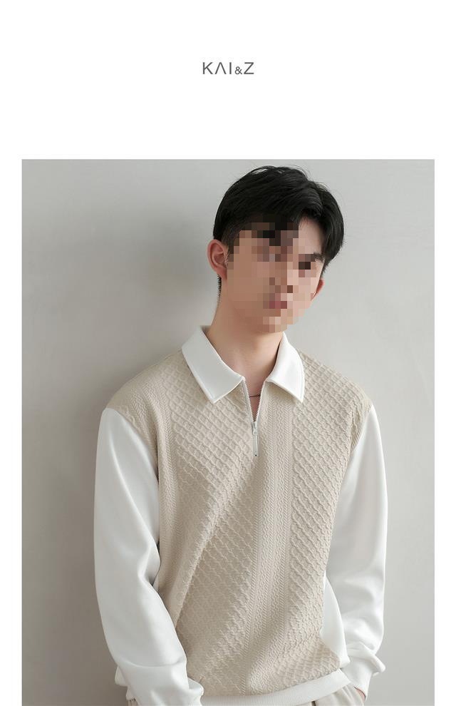 봄, 가을 니트 칼라 캐주얼 트렌디 스플리싱 의류 한국식 긴팔 셔츠 남성용 페이크 투피스 스웨트 셔츠스토어 가기
