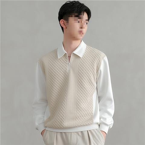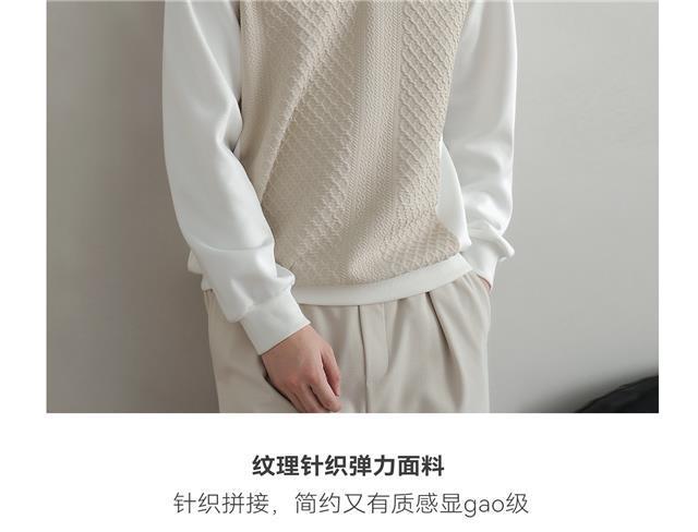 봄, 가을 니트 칼라 캐주얼 트렌디 스플리싱 의류 한국식 긴팔 셔츠 남성용 페이크 투피스 스웨트 셔츠