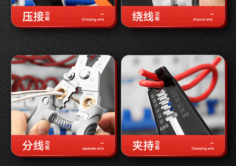 전문가용 다기능 와이어 스트리퍼, 다용도 고경도 내마모성 전선 분리 및 압착, 절단용 전기기사용 와이어 스트리퍼