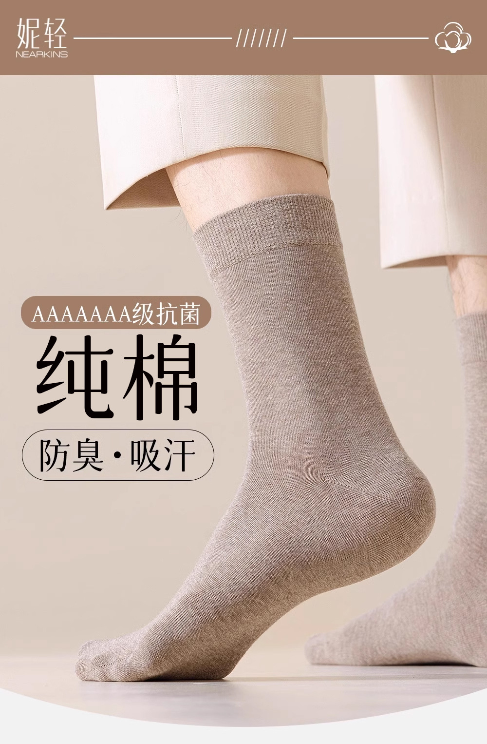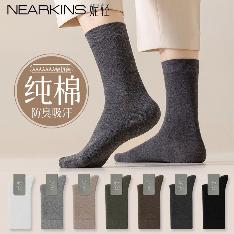 양말 남성용 면 봄, 가을 종아리 중간 양말 7A 항균, 탈취 및 땀 흡수 남성용 대형 뼈없는 비즈니스 긴 양말스토어 가기