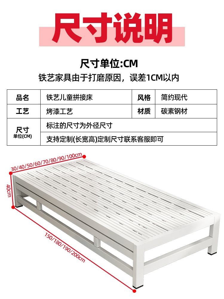 가드레일이 있는 철제 어린이 접합 침대, 소형 침대, 싱글 침대, 아기 소년 소녀 공주 침대 옆 침대, 넓은 침대