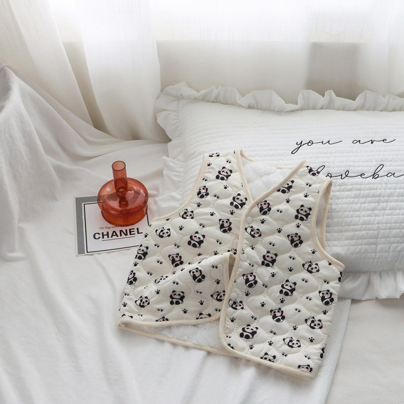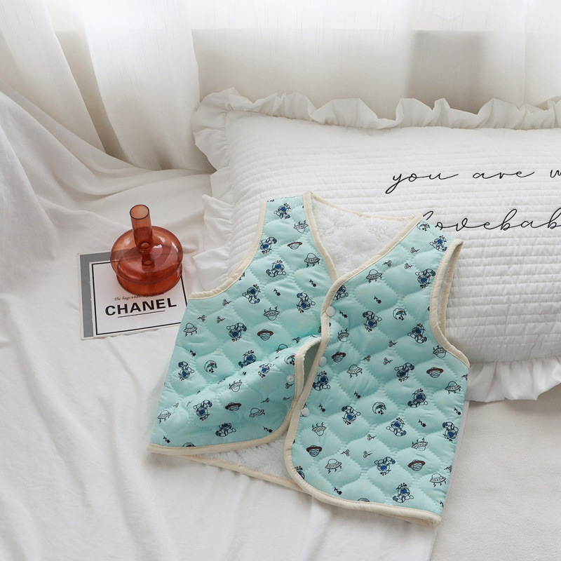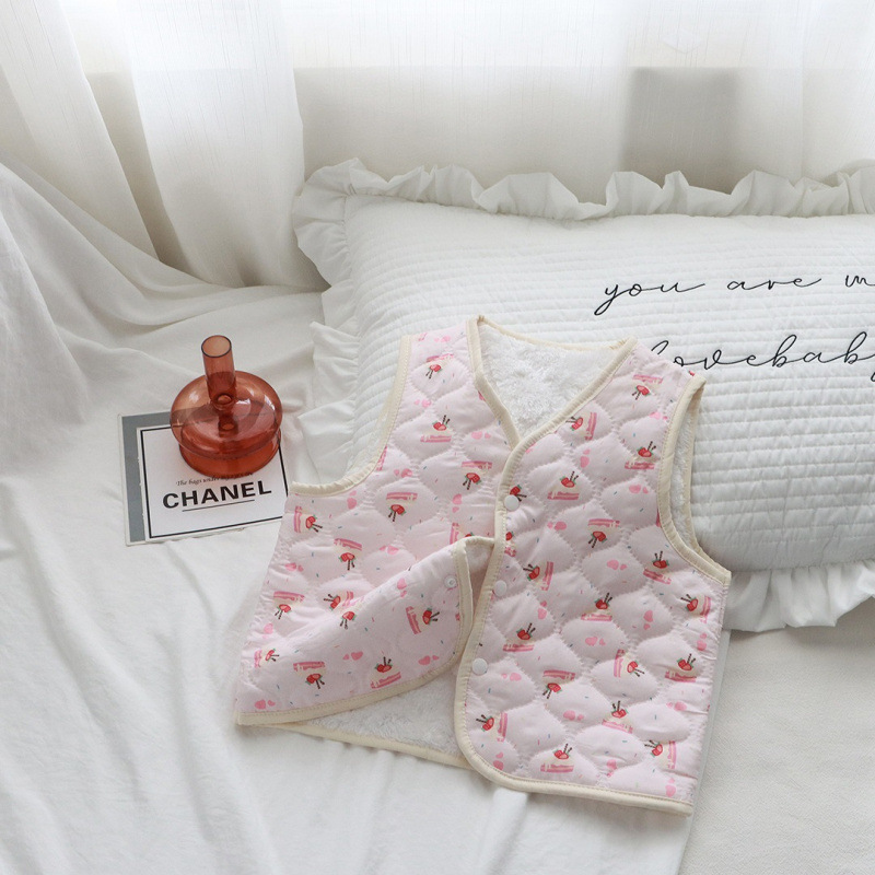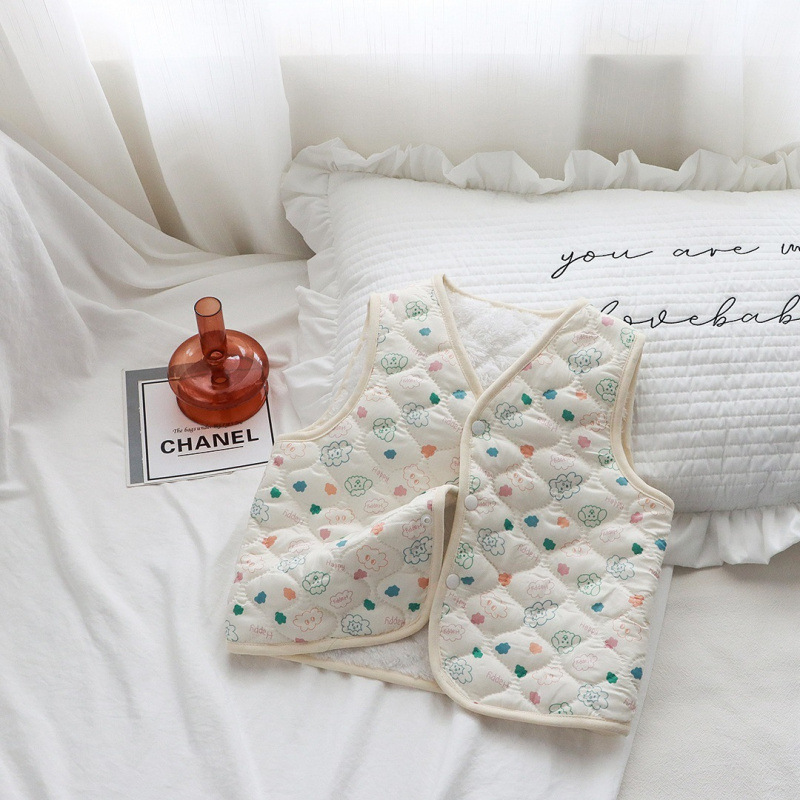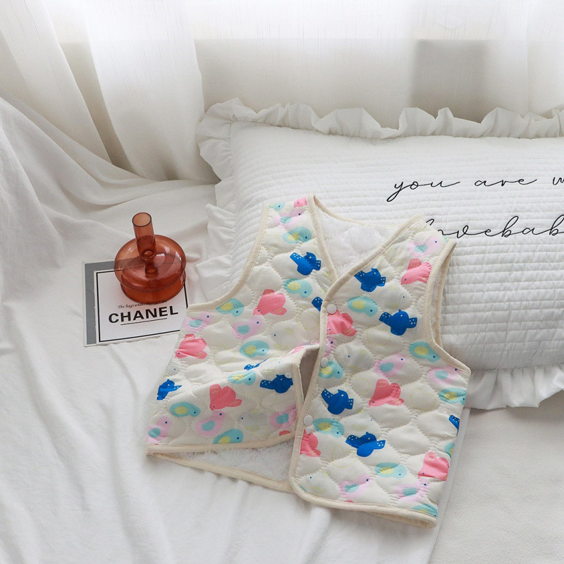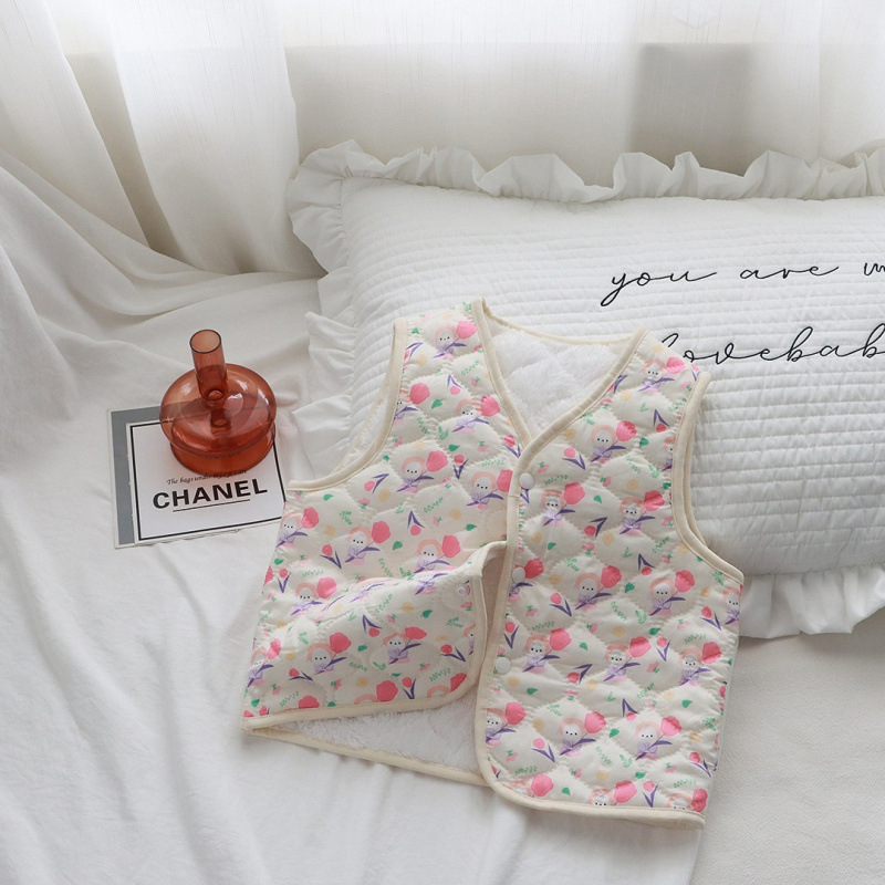 어린이 조끼 가을, 겨울 새로운 소년과 소녀 꽃무늬 아기 따뜻한 조끼 두꺼운 어린이 민소매 탑 내부 및 외부 착용