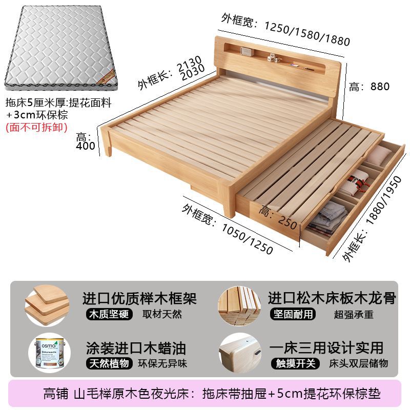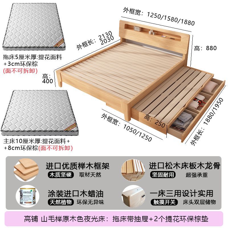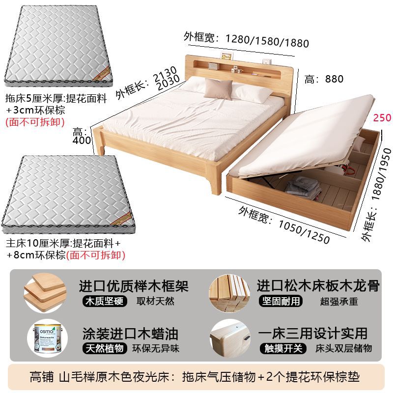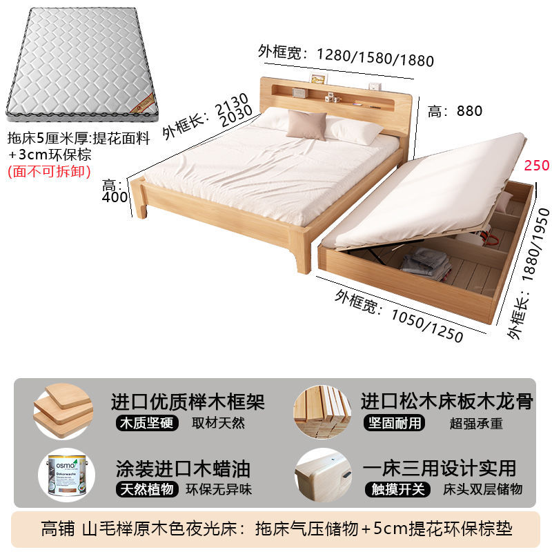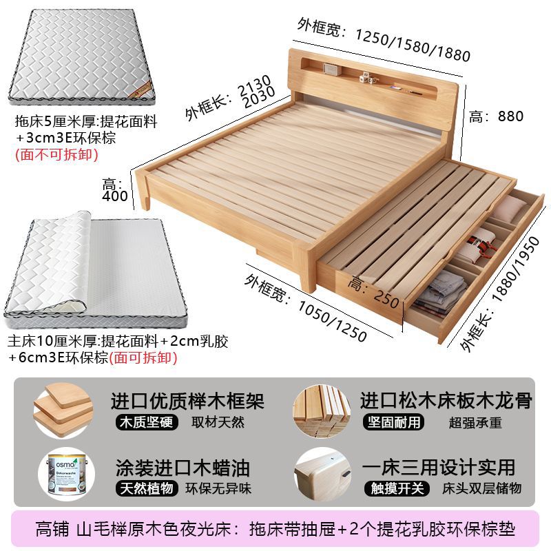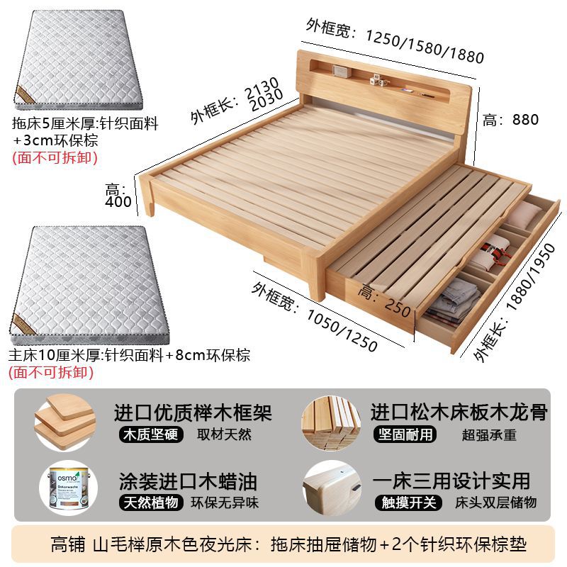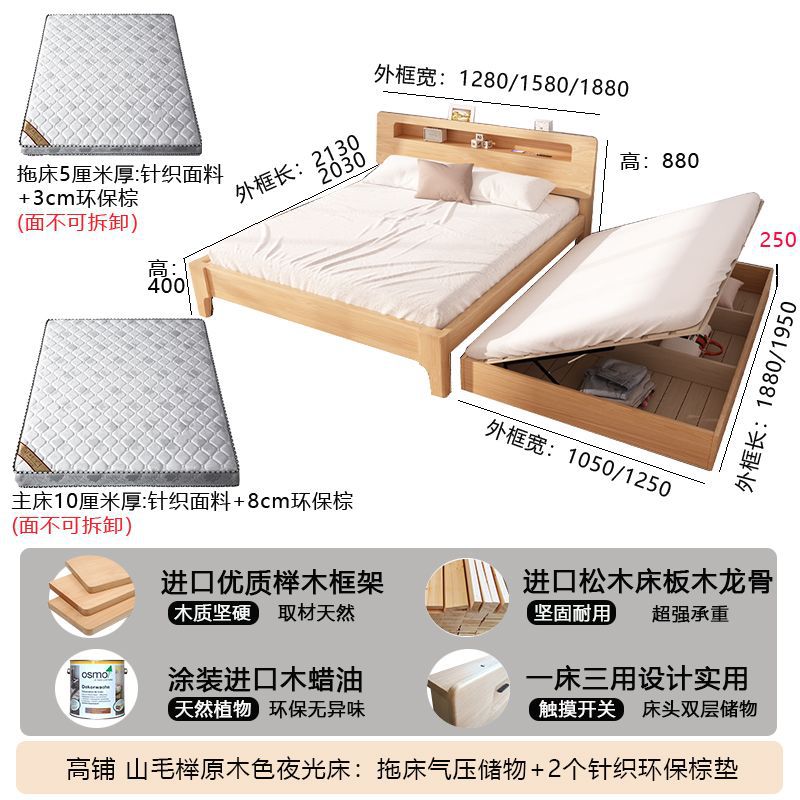 모든 원목 침대, 더블 침대, 소형 아파트, 너도밤나무 다기능 수납 침대, 어린이 이층 침대, 드래그 침대, 풀아웃 침대